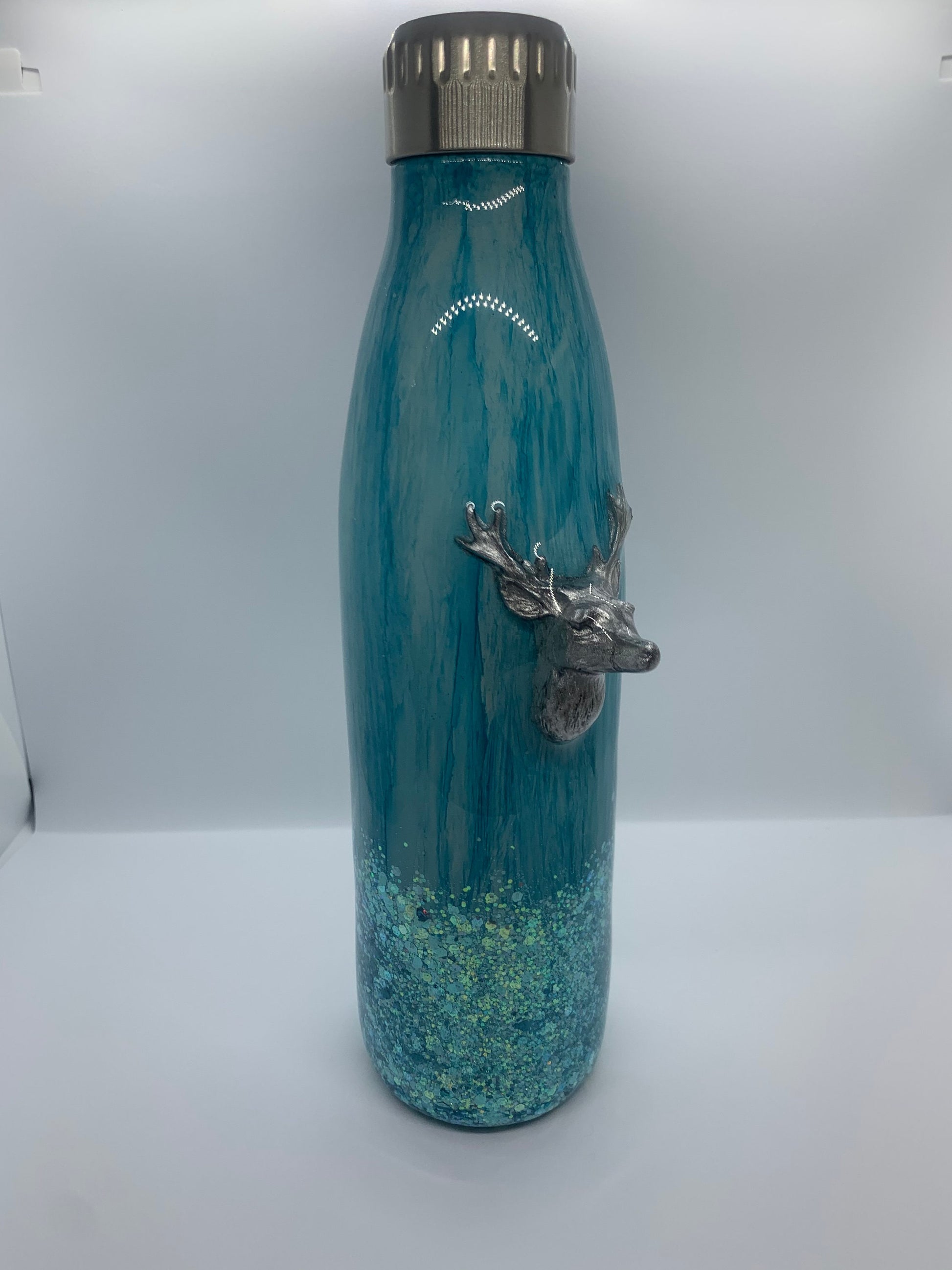 3D Deer Wood Grain Teal Glitter 17oz Water Bottle Tumbler