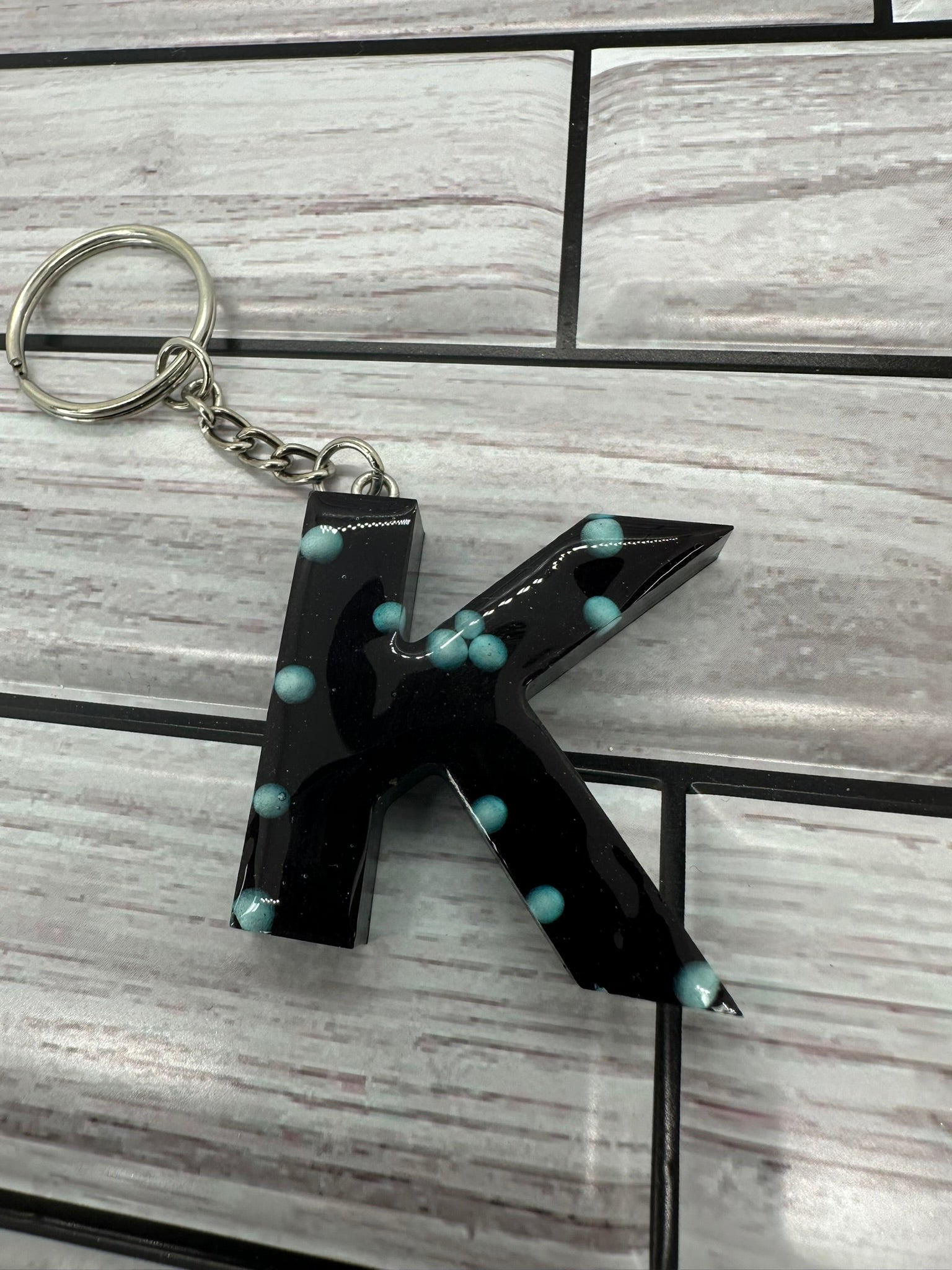 This stylish and unique resin letter K keychain is handmade with love! Featuring a striking black color with teal glitter accents and a glossy finish, it's the perfect way to personalize your keys, bag, or backpack. Made with high-quality resin, this durable keychain is a great gift for anyone whose name starts with K or who simply loves this letter of the alphabet.