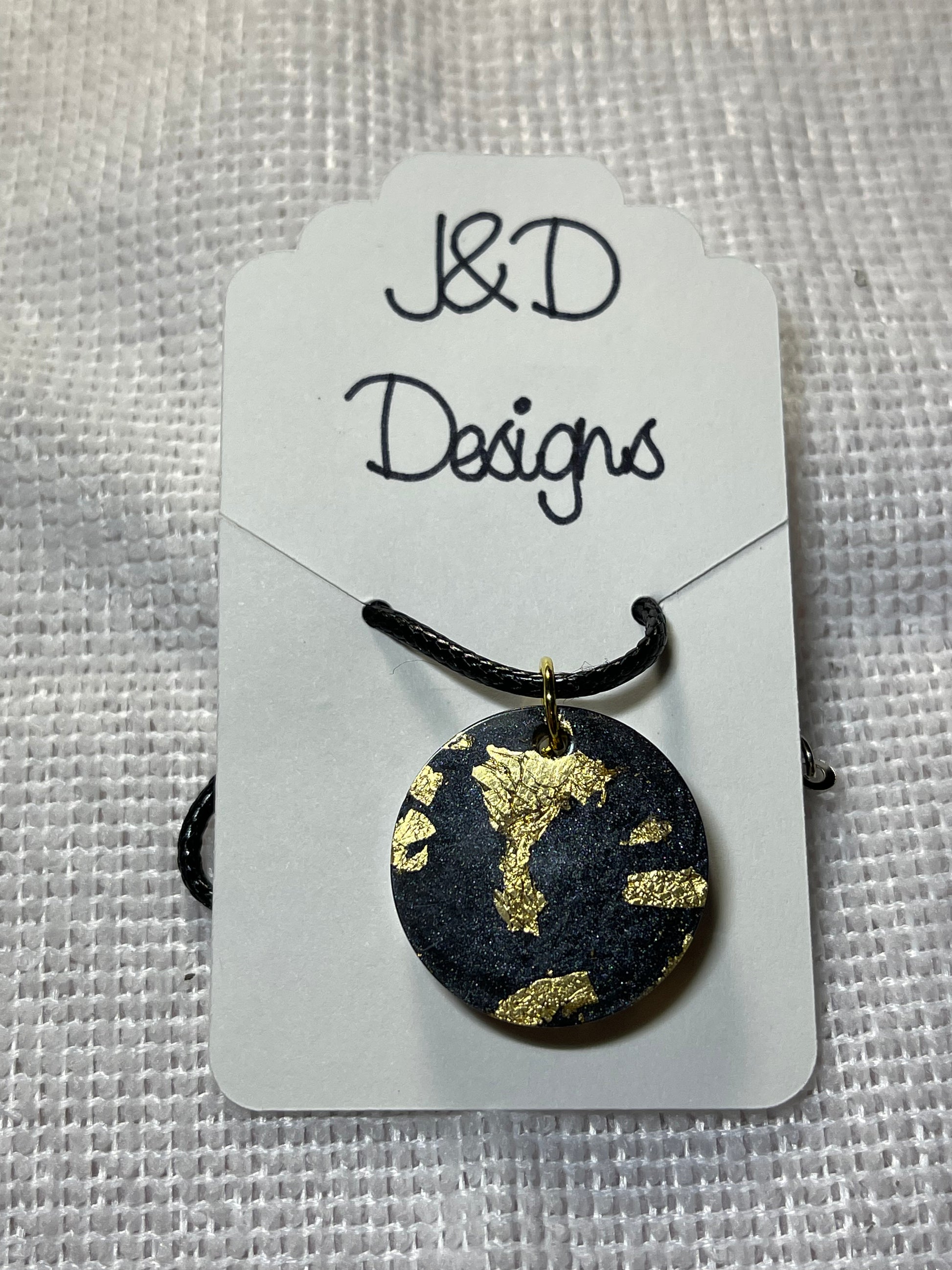 This Black and Gold Flake Round Resin Pendant Necklace is a stunning accessory that effortlessly combines elegance and style. The pendant features a round shape with a mesmerizing black and gold flake design, adding a touch of sophistication to any outfit.