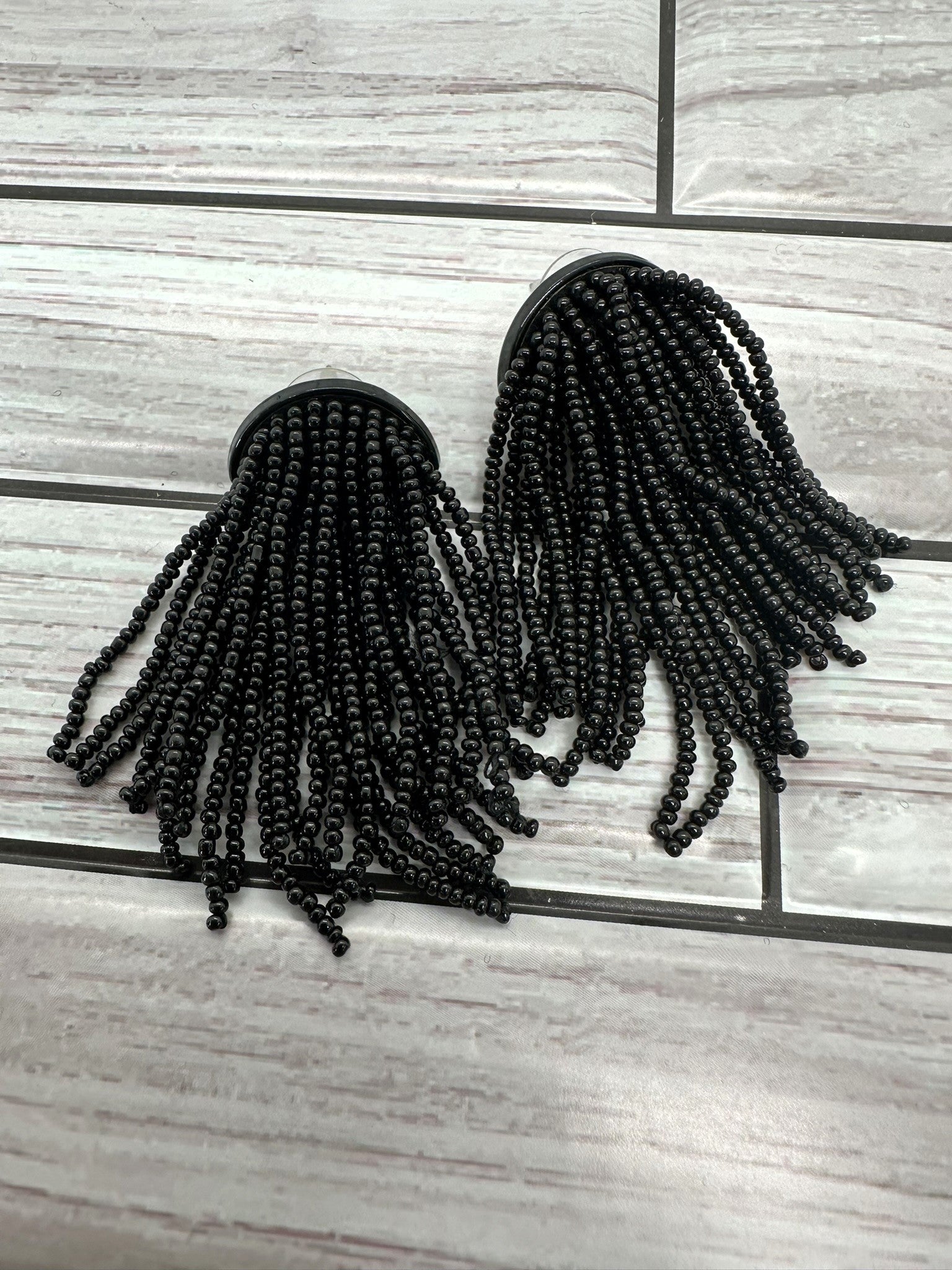 Black Bead Tassel Earrings