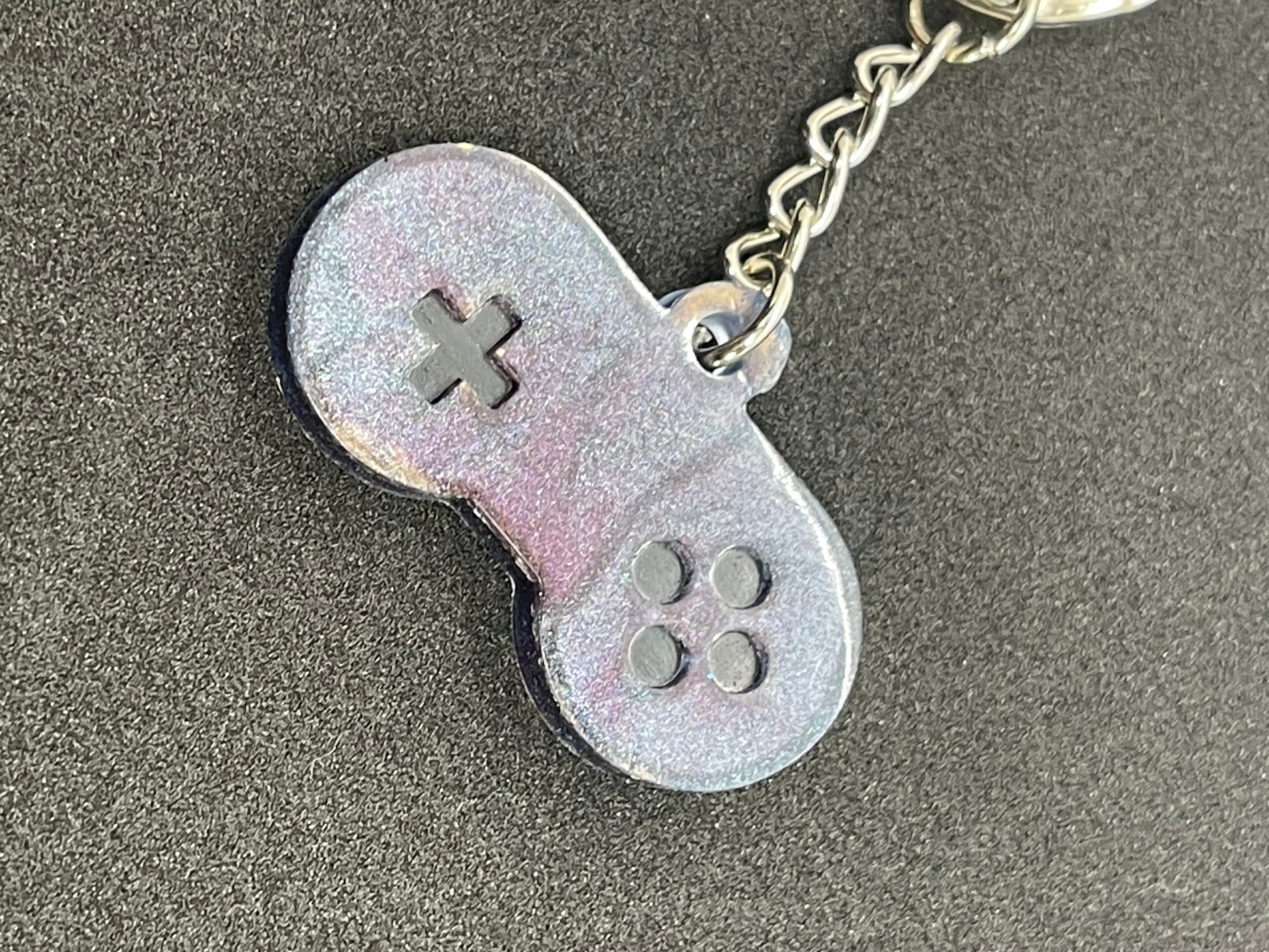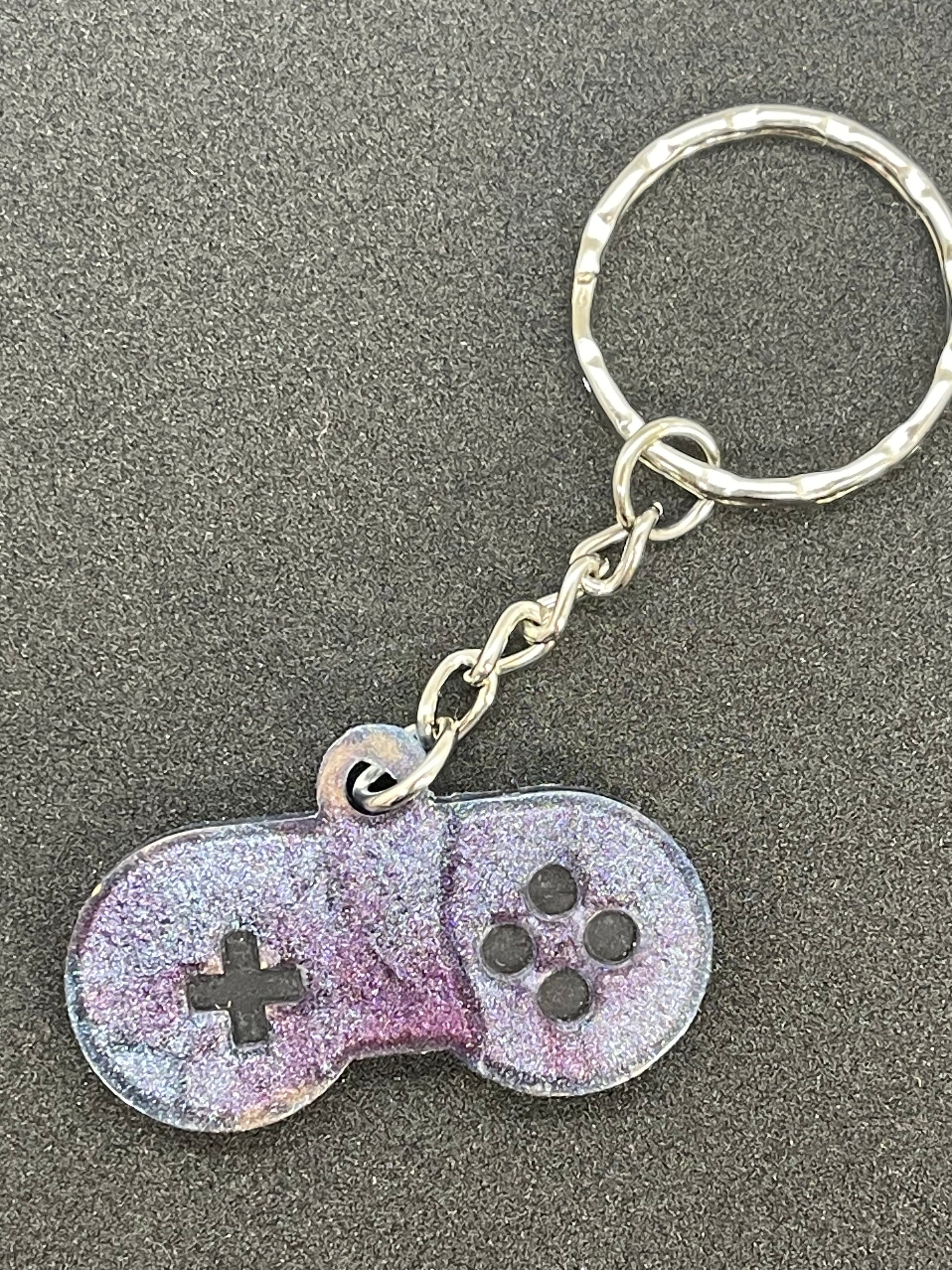 This Blue and Purple Color Shifting Game Controller Keychain is a must-have accessory for any gaming enthusiast. The color-shifting feature adds a fun and unique element to the design, making it stand out from other keychains. Perfect for attaching to keys, backpacks, or even as a zipper pull, this keychain is both stylish and practical. Show off your love for gaming with this eye-catching accessory that is sure to turn heads wherever you go.
