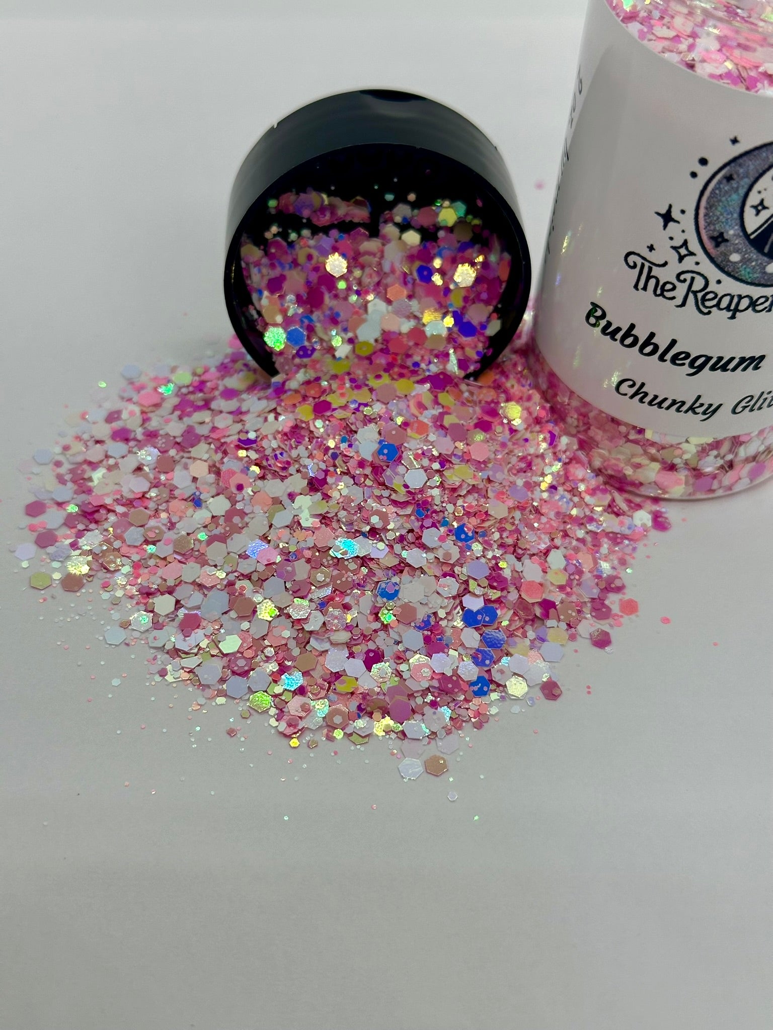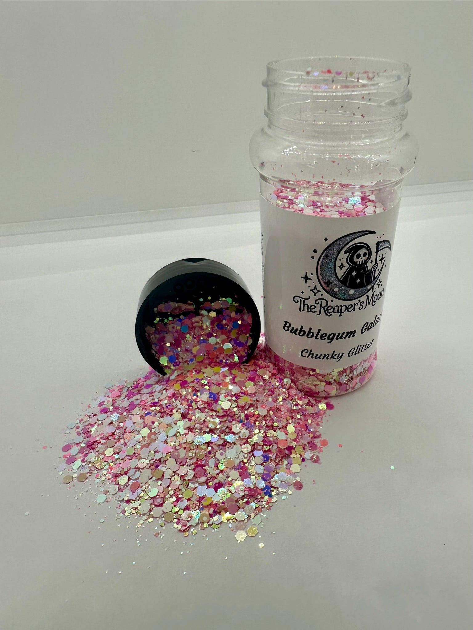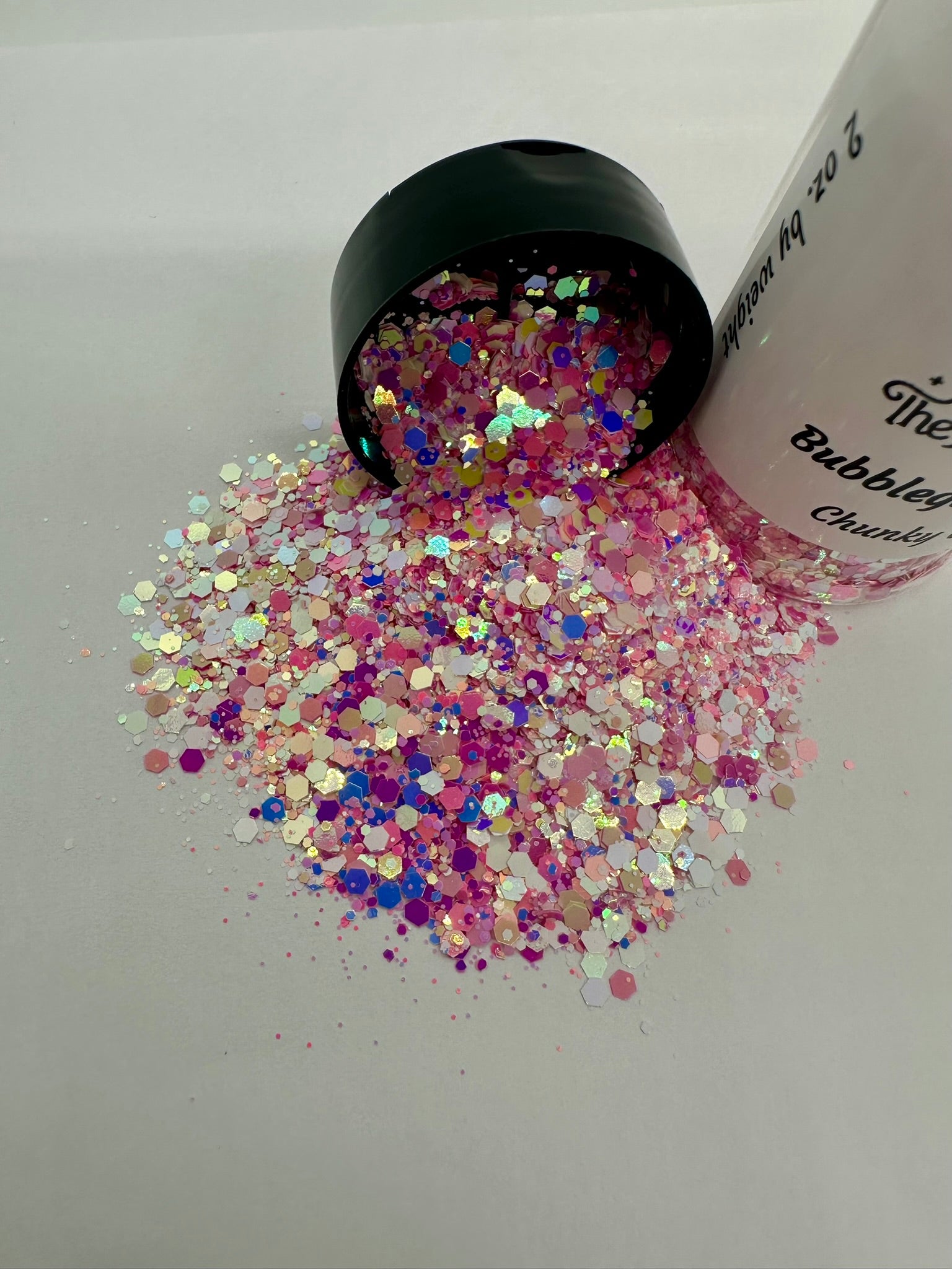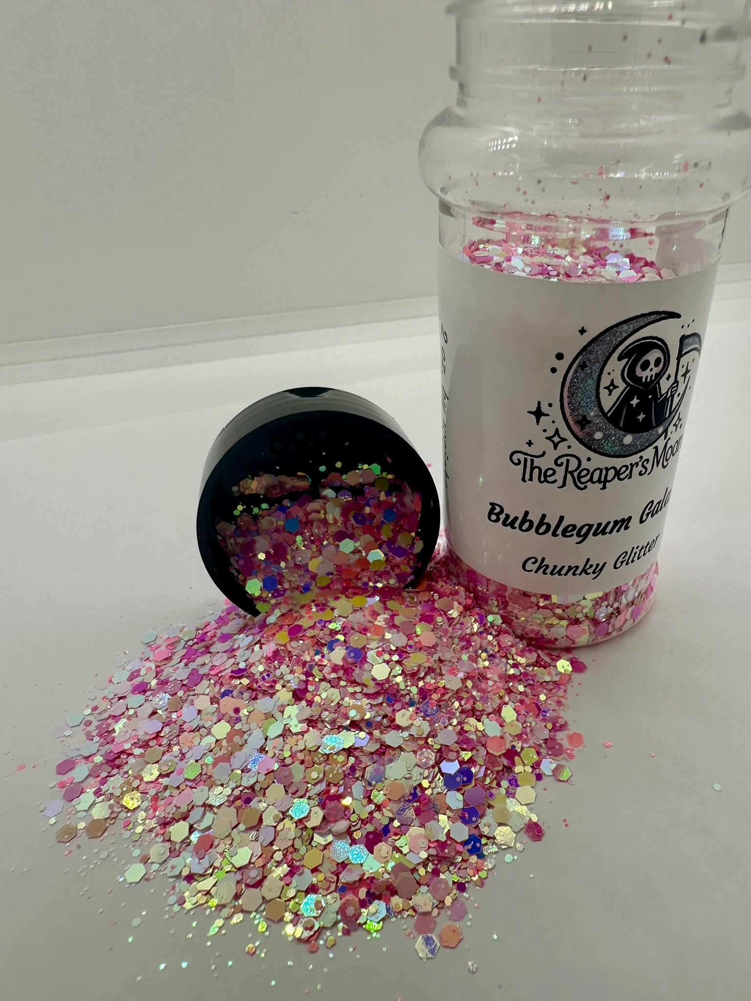 Dive into a cosmic swirl of color with our Bubblegum Galaxy glitter. Featuring a mix of hexagonal shapes in vibrant pinks, ethereal purples, and twinkling blues, each fleck catches the light for an irresistible, multi-dimensional sparkle.