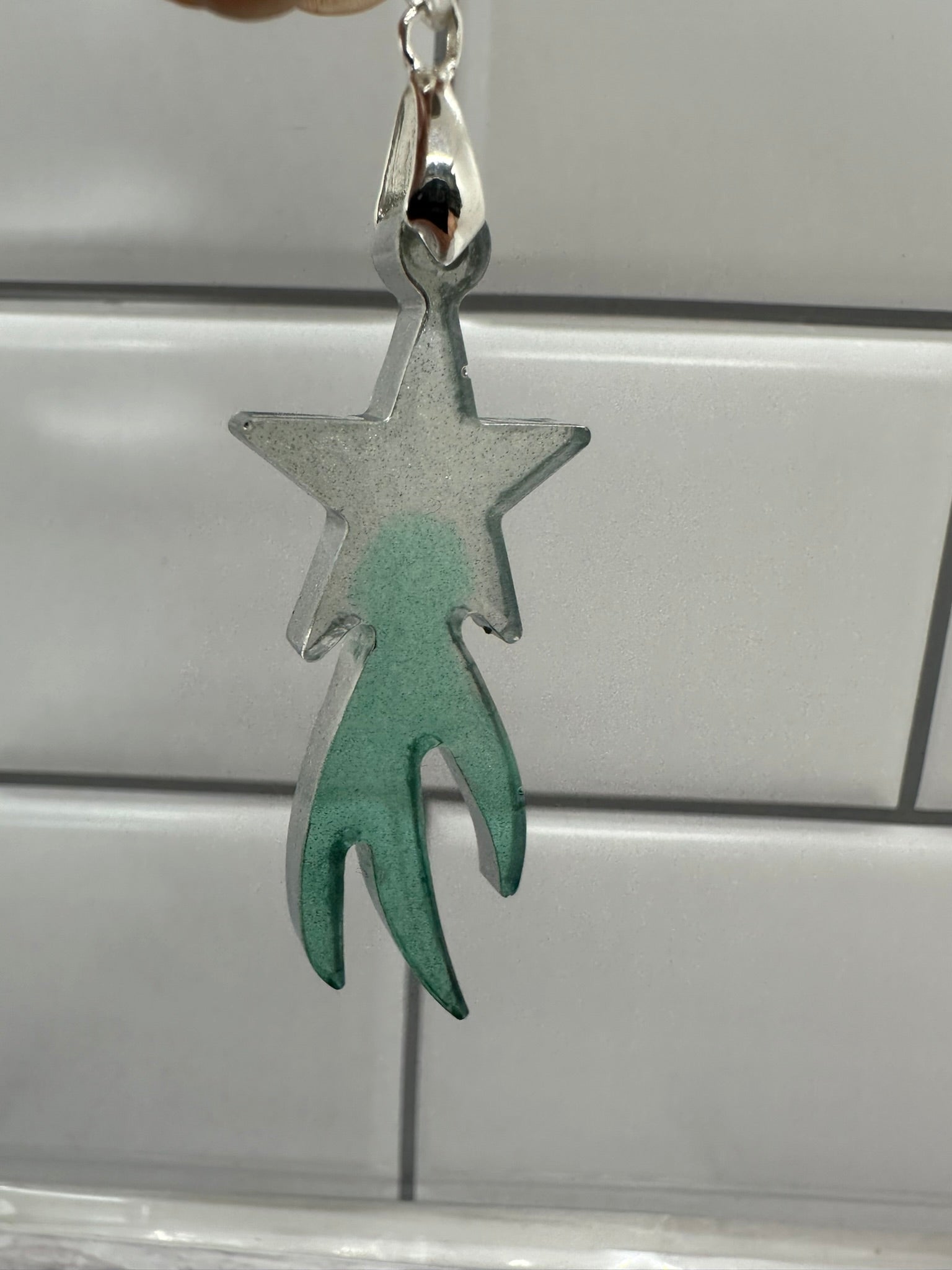 - Unique Design: Clear resin transitions to vibrant green with a shimmering silver star.
