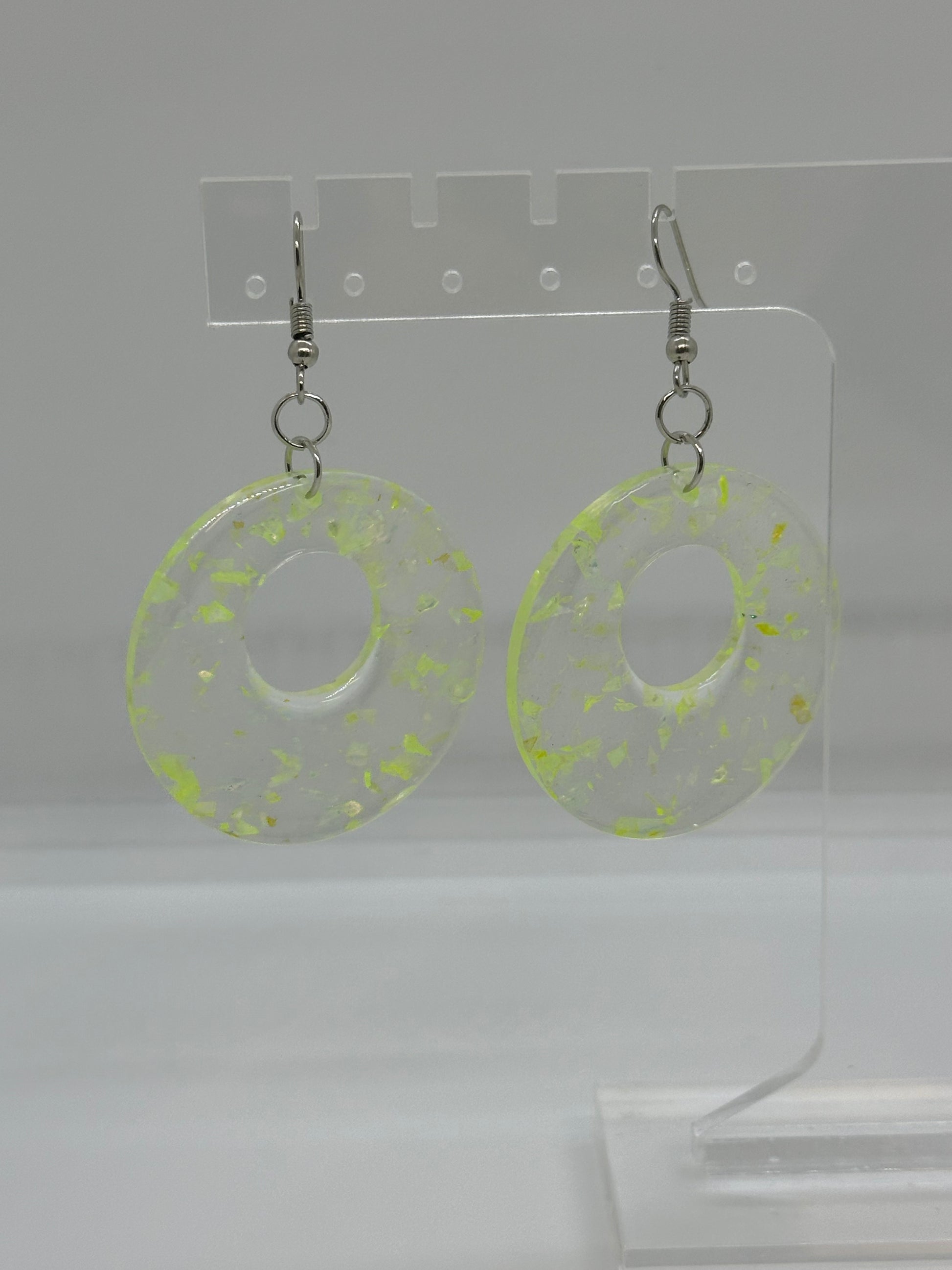 Clear and yellow flake round earrings