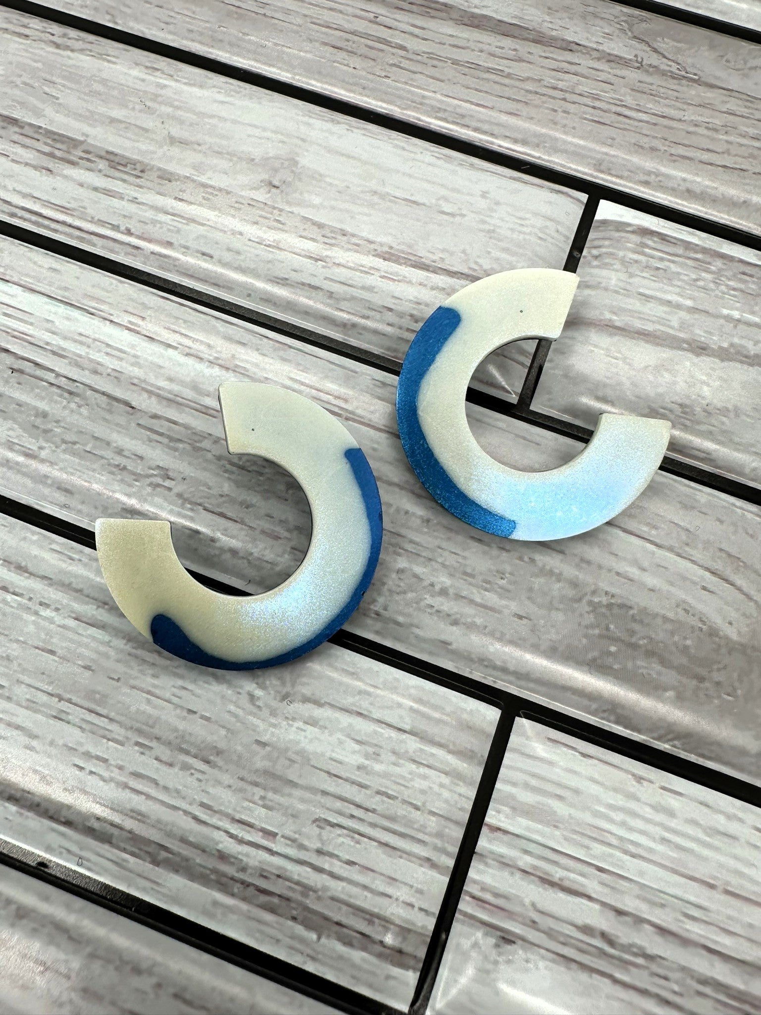 Color Shifting Blues Whites Yellows C Stud Earrings