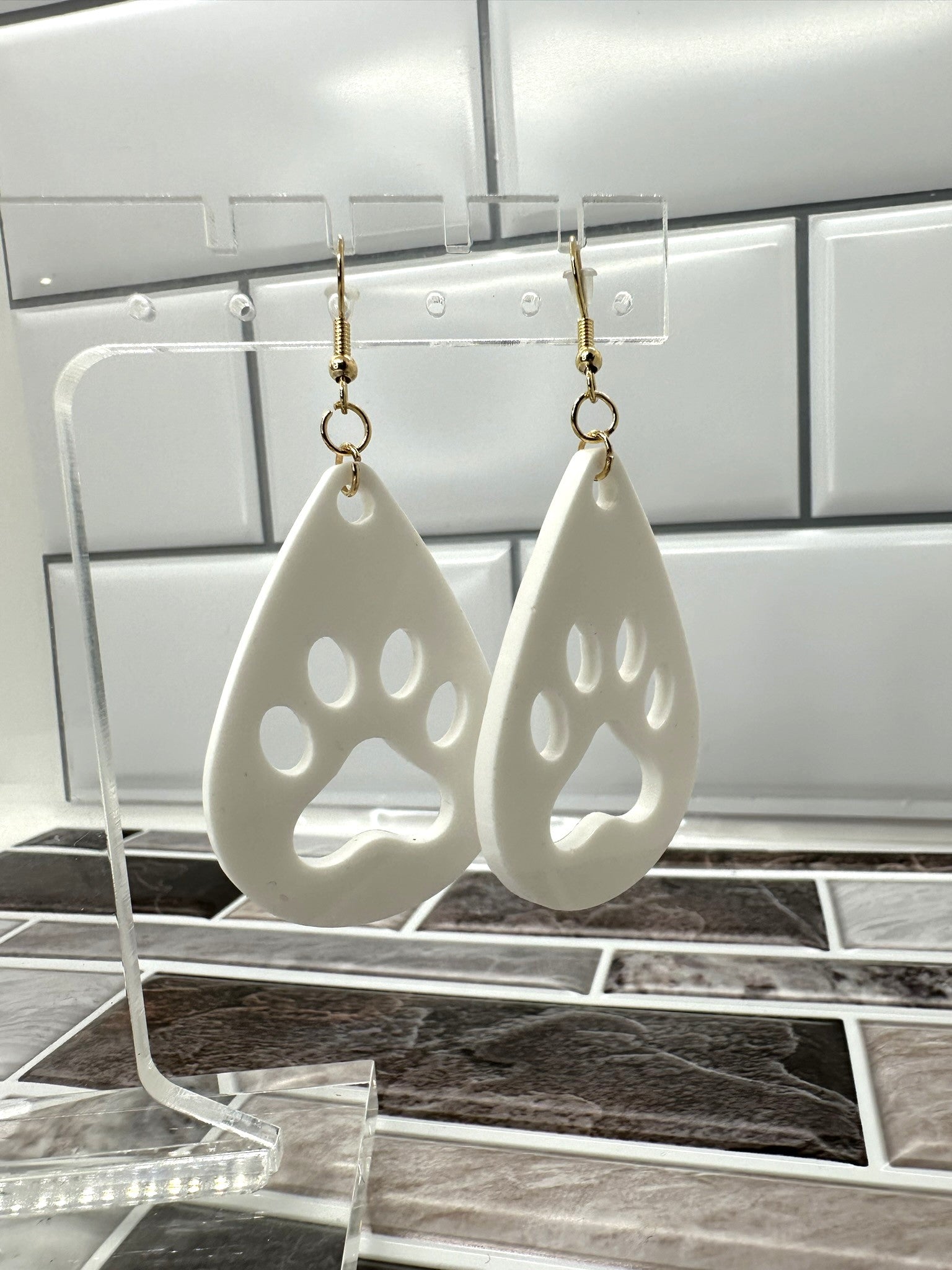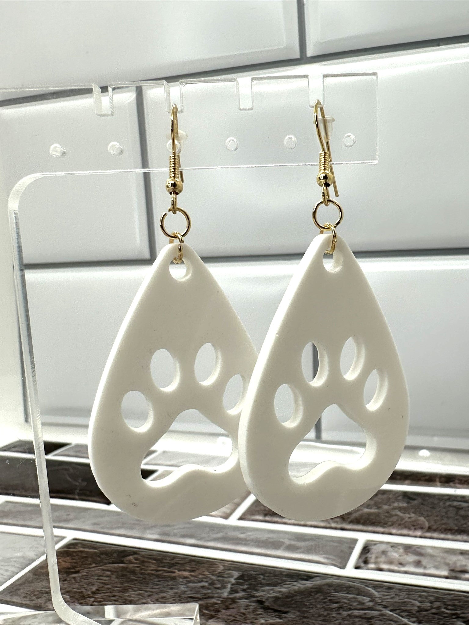 These exquisite white teardrop earrings are a must-have for any dog lover. The classic teardrop shape is adorned with a delicate paw print, adding a touch of playful charm to the elegant design. Crafted with high-quality materials, these earrings are both stylish and durable.