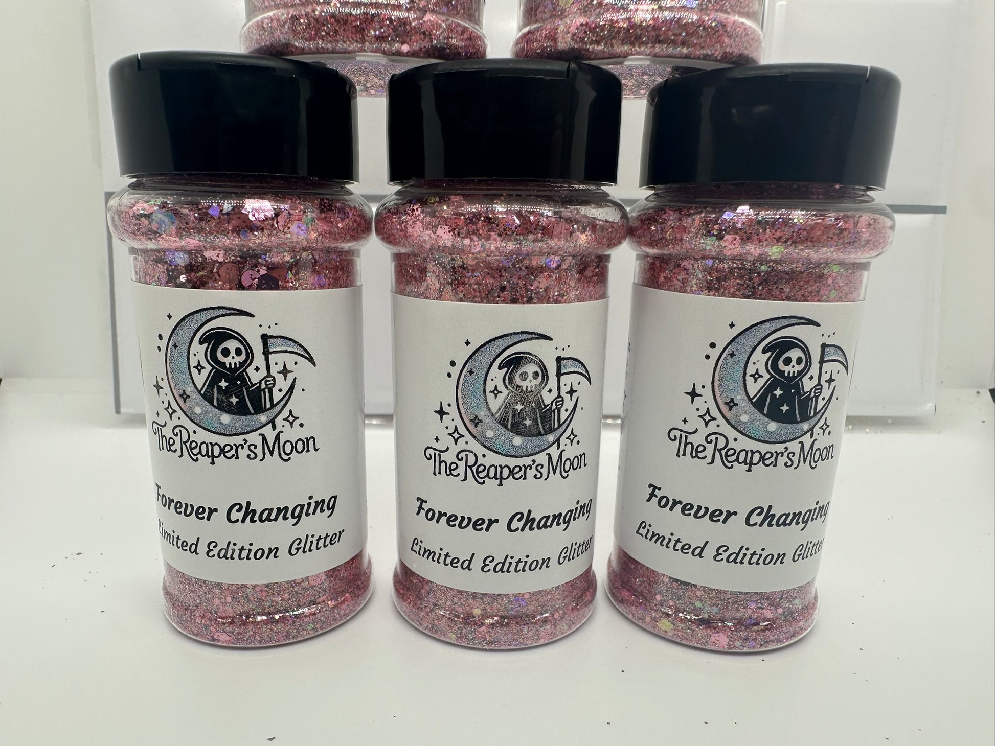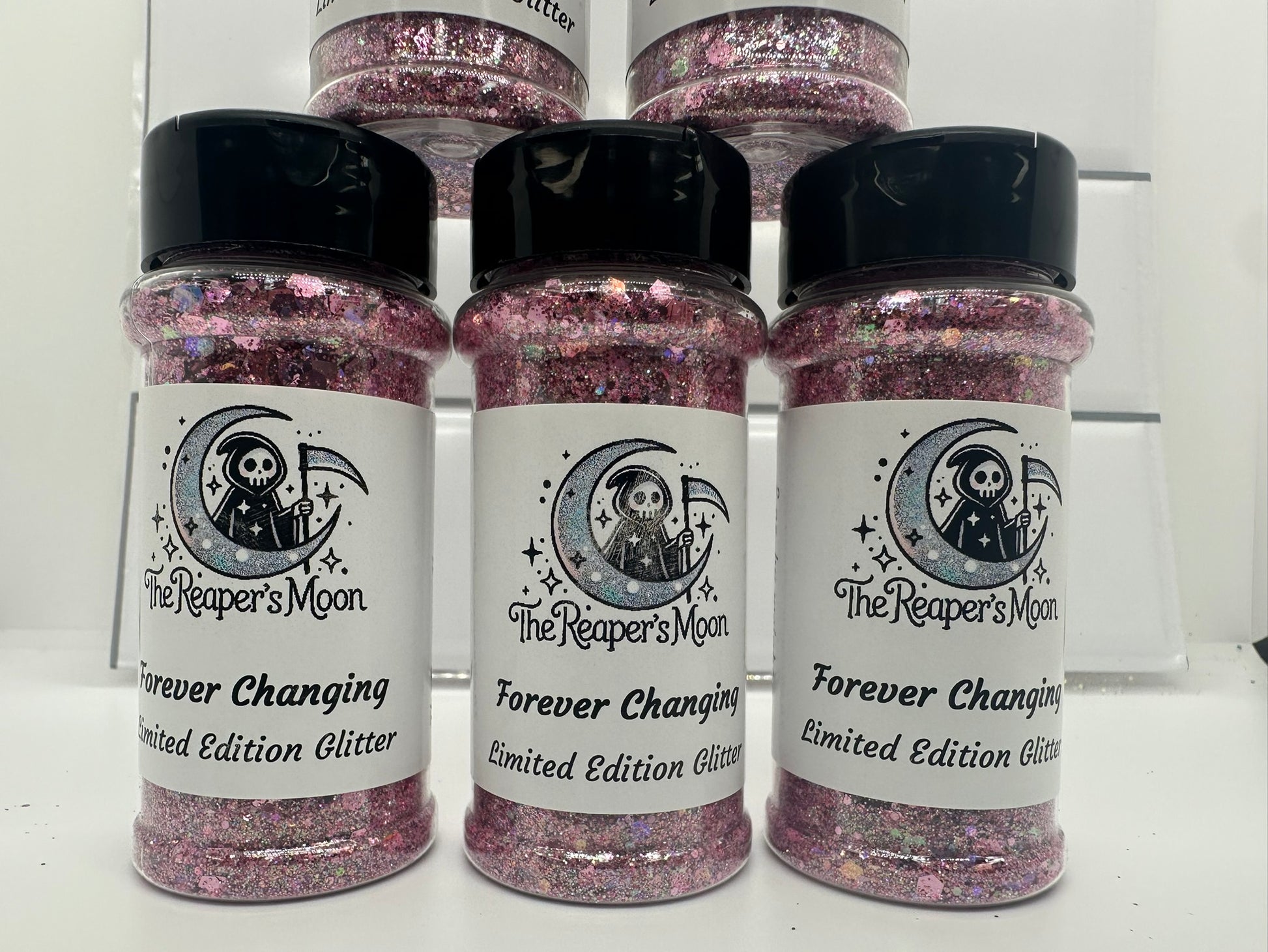 Dare to embrace the unpredictable? Our Forever Changing Limited Edition Glitter collection is a truly one-of-a-kind experience for every creative project! This isn't your average glitter; it's a dynamic, ever-evolving mystery mix crafted right here by The Reaper's Moon.