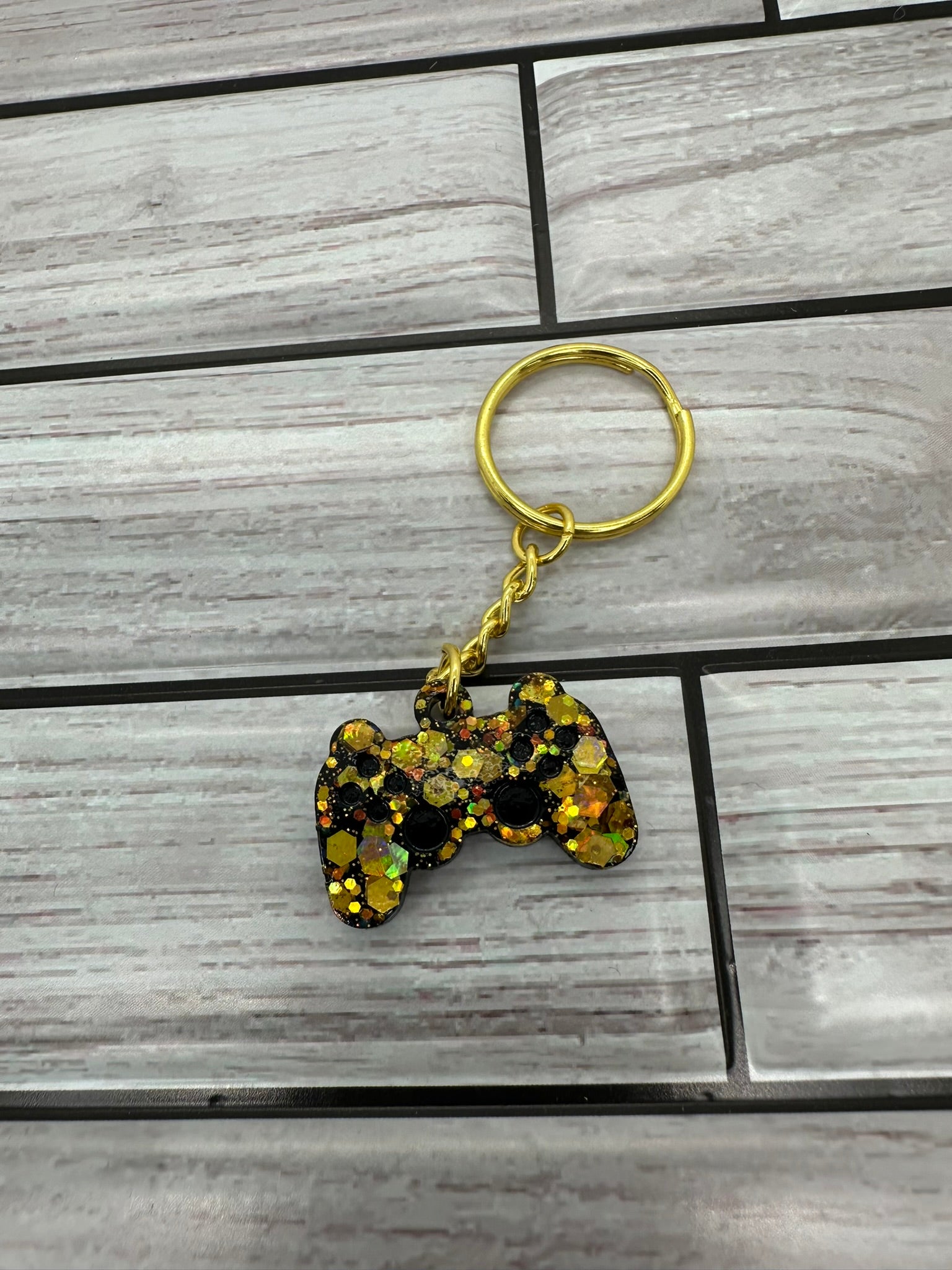 Add some sparkle to your keys with our stylish gold sequin keychain! This eye-catching accessory features a beautiful gold glitter, creating a dazzling effect that will surely turn heads. Perfect for gamers, our Gold and Black Game Controller Keychain adds a touch of glamour to your everyday essentials. Keep your keys organized while making a trendy statement with this must-have keychain.