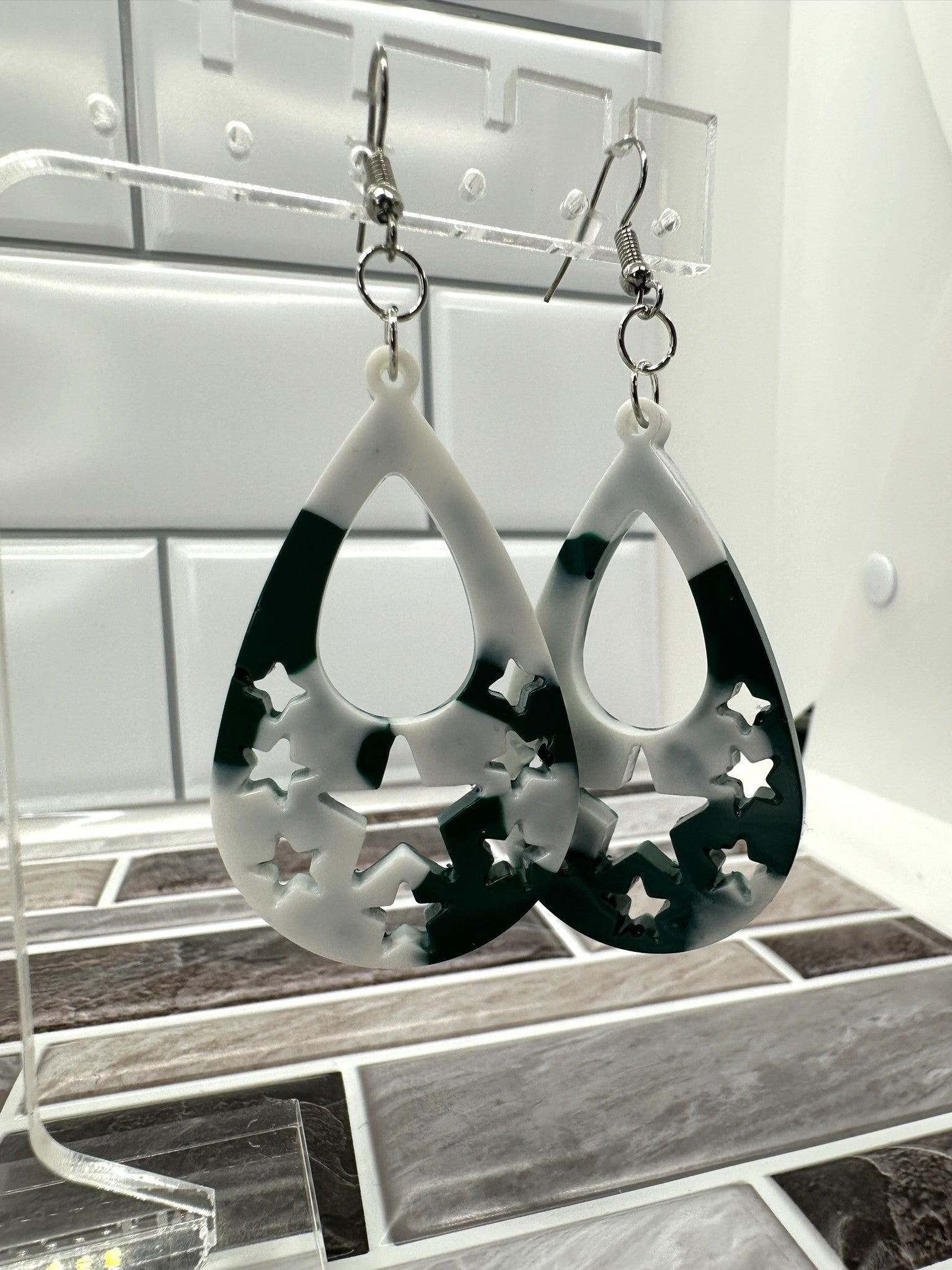 Twinkling like constellations in the night sky, these enchanting green and white star teardrop earrings are a must-have for any jewelry lover. The delicate teardrop shape is adorned with a cluster of shimmering stars, creating a mesmerizing and ethereal look. The combination of soft green and crisp white evokes a sense of tranquility and elegance.