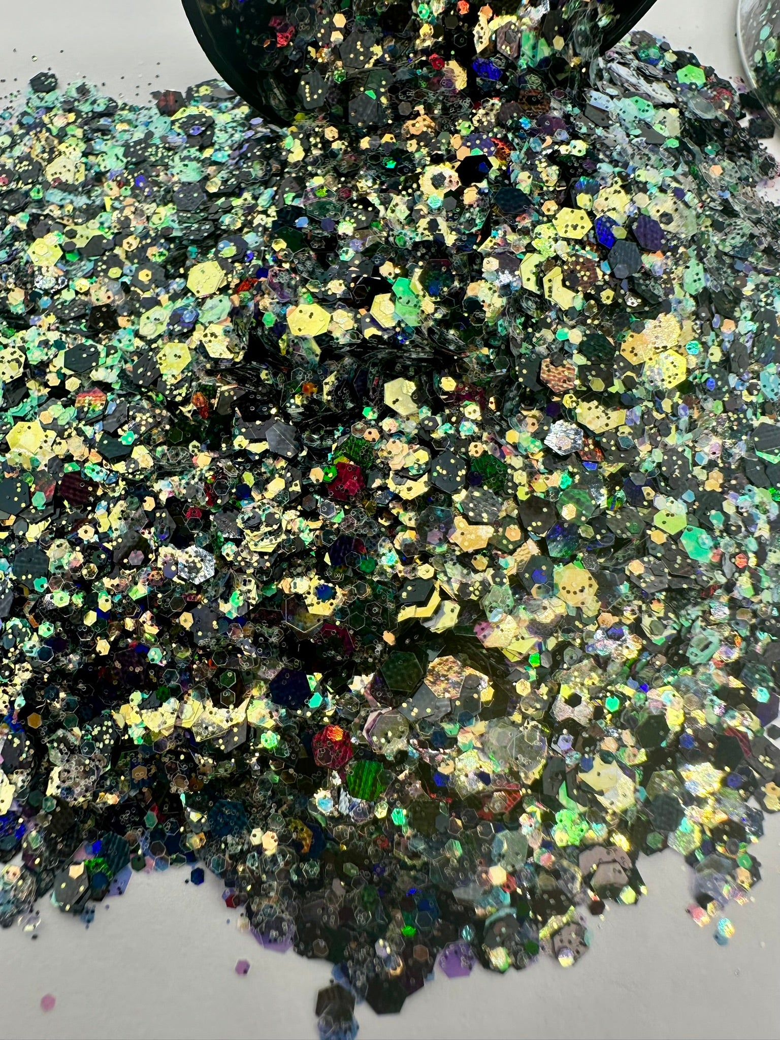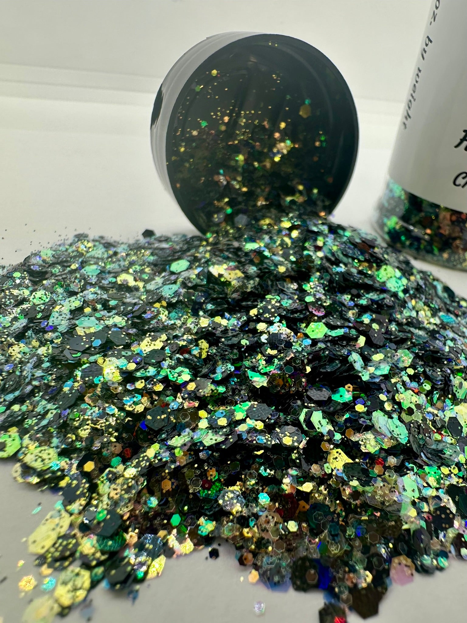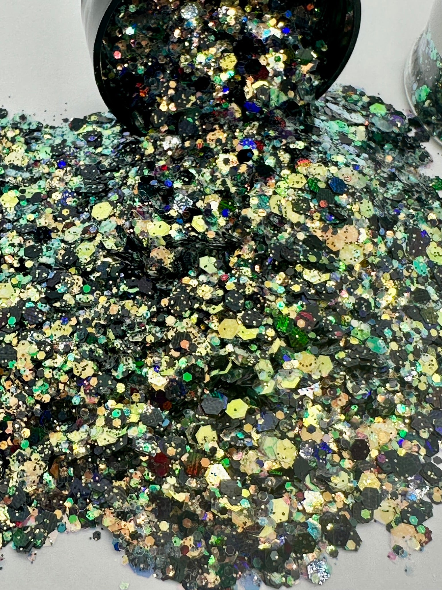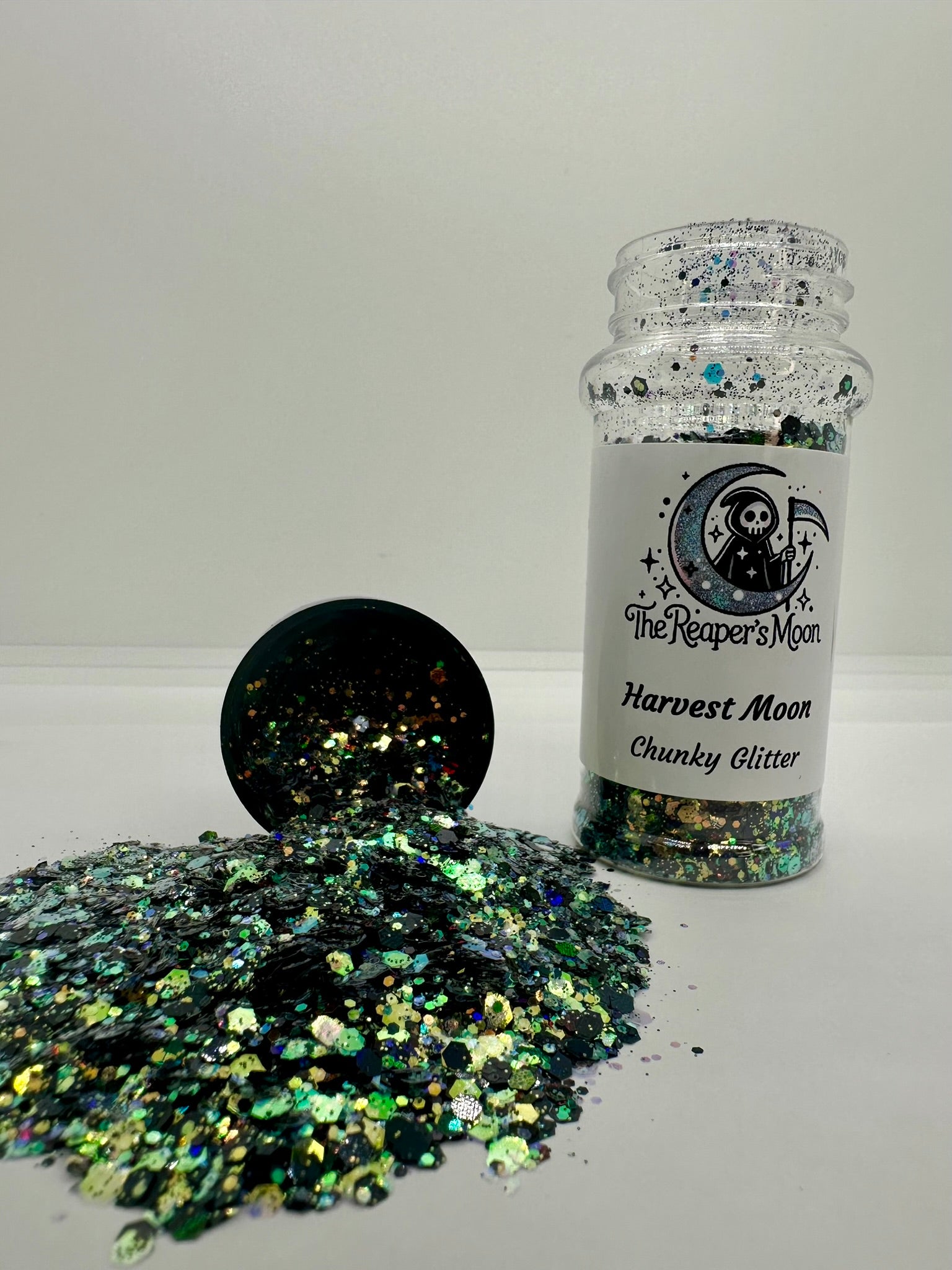 Unleash your inner magic with "Harvest Moon" chunky glitter. A mix of rich, earthy tones and captivating iridescence, this glitter captures the mystique of a moonlit harvest.