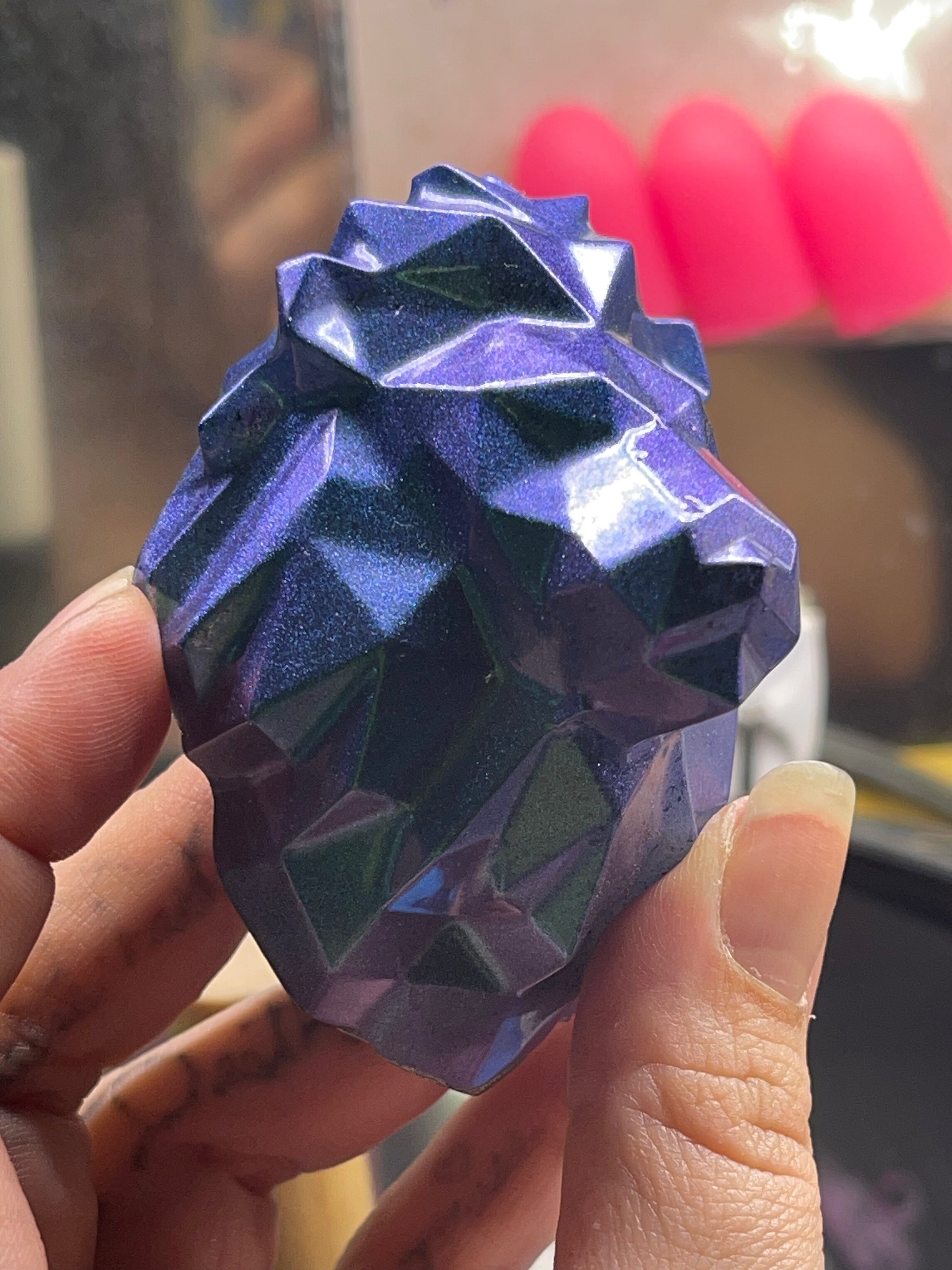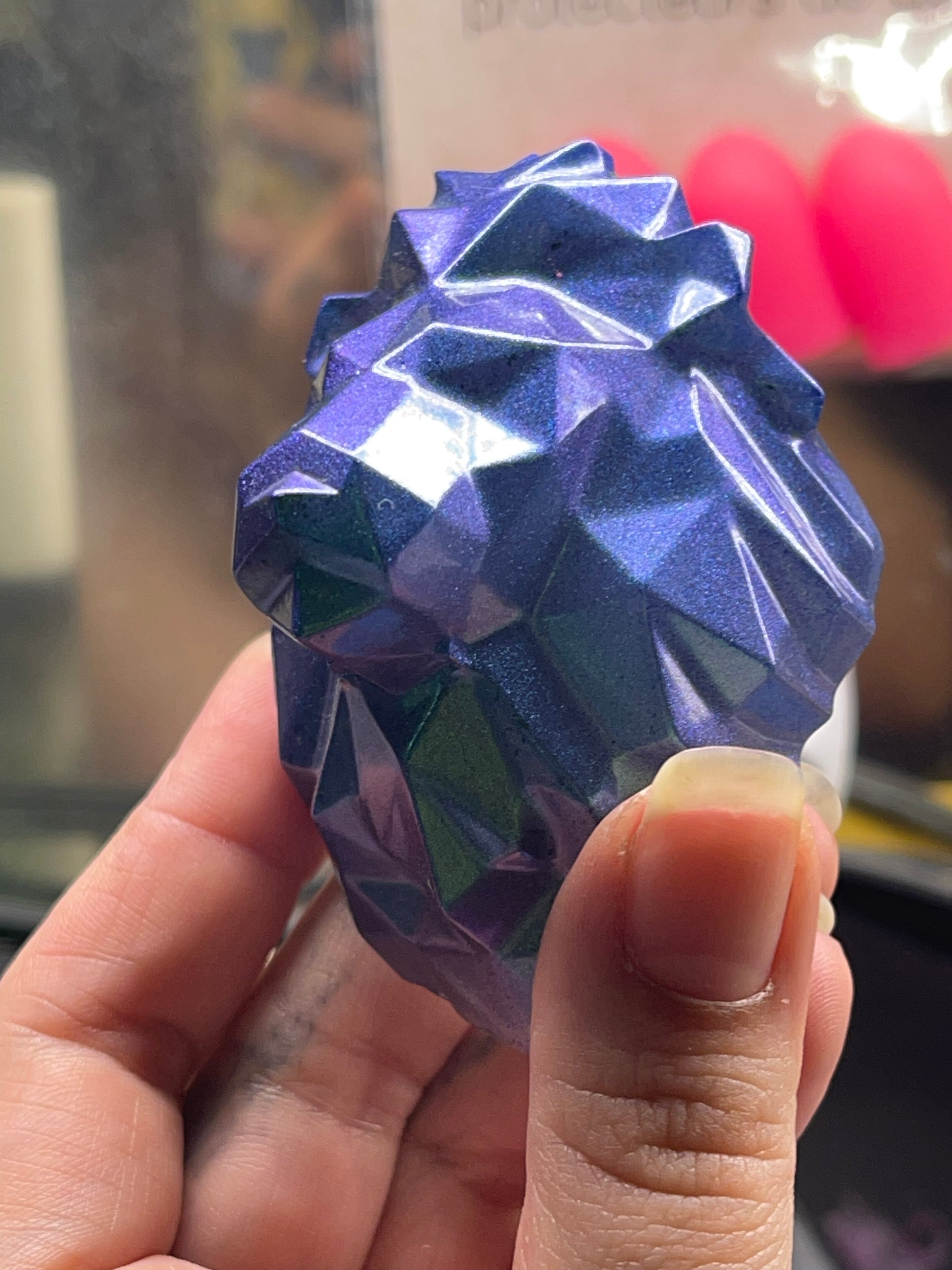 Add a touch of whimsy to your kitchen decor with our Lion Head Fridge Magnet Color Shift. This unique magnet features a stunning color-shifting design that will catch the eye of anyone who enters your kitchen. Perfect for animal lovers or anyone looking to add a pop of color to their fridge, this Lion Head Fridge Magnet is a must-have accessory for your home.