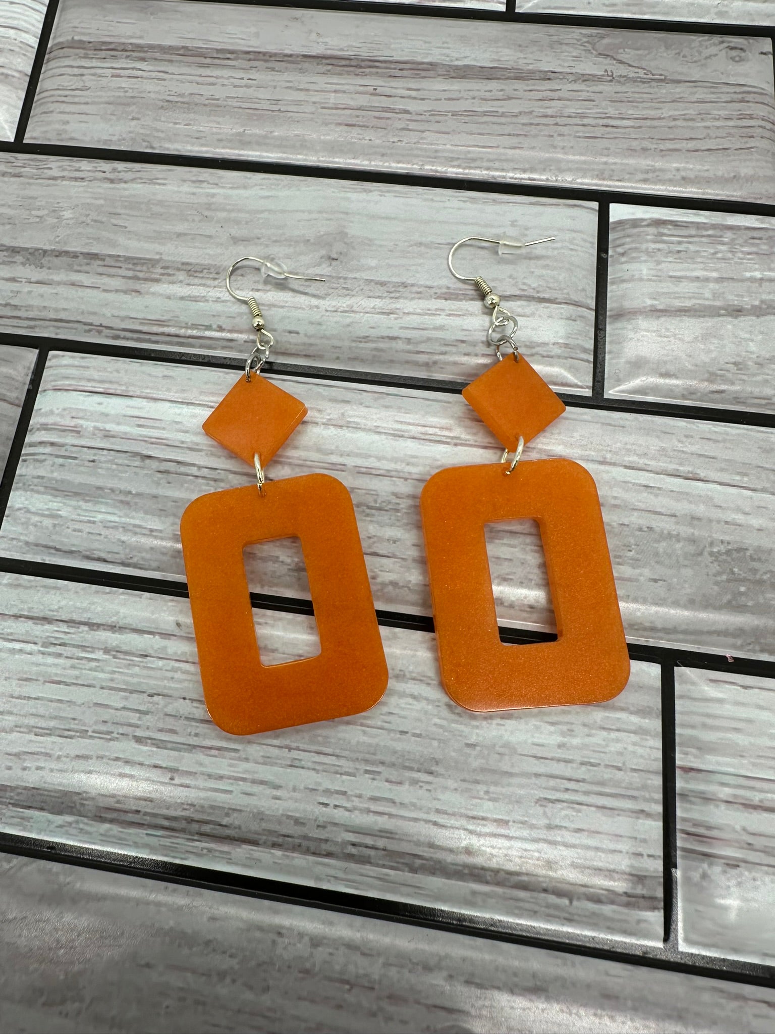 Unique and Eye-Catching: These unique earrings are sure to make you stand out from the crowd. The orange color and geometric shape make them a stylish and modern accessory.