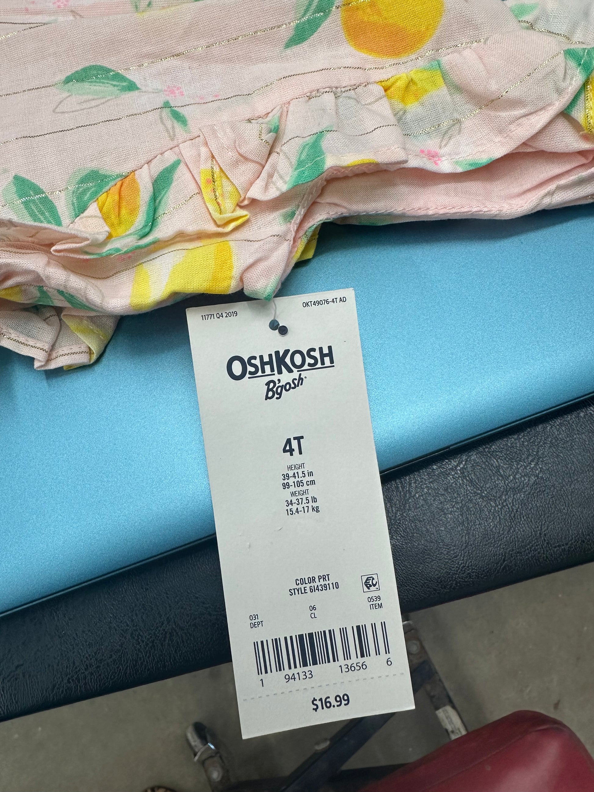 Osh'kosh Girl's Pink Dress with Lemons 4T NWT