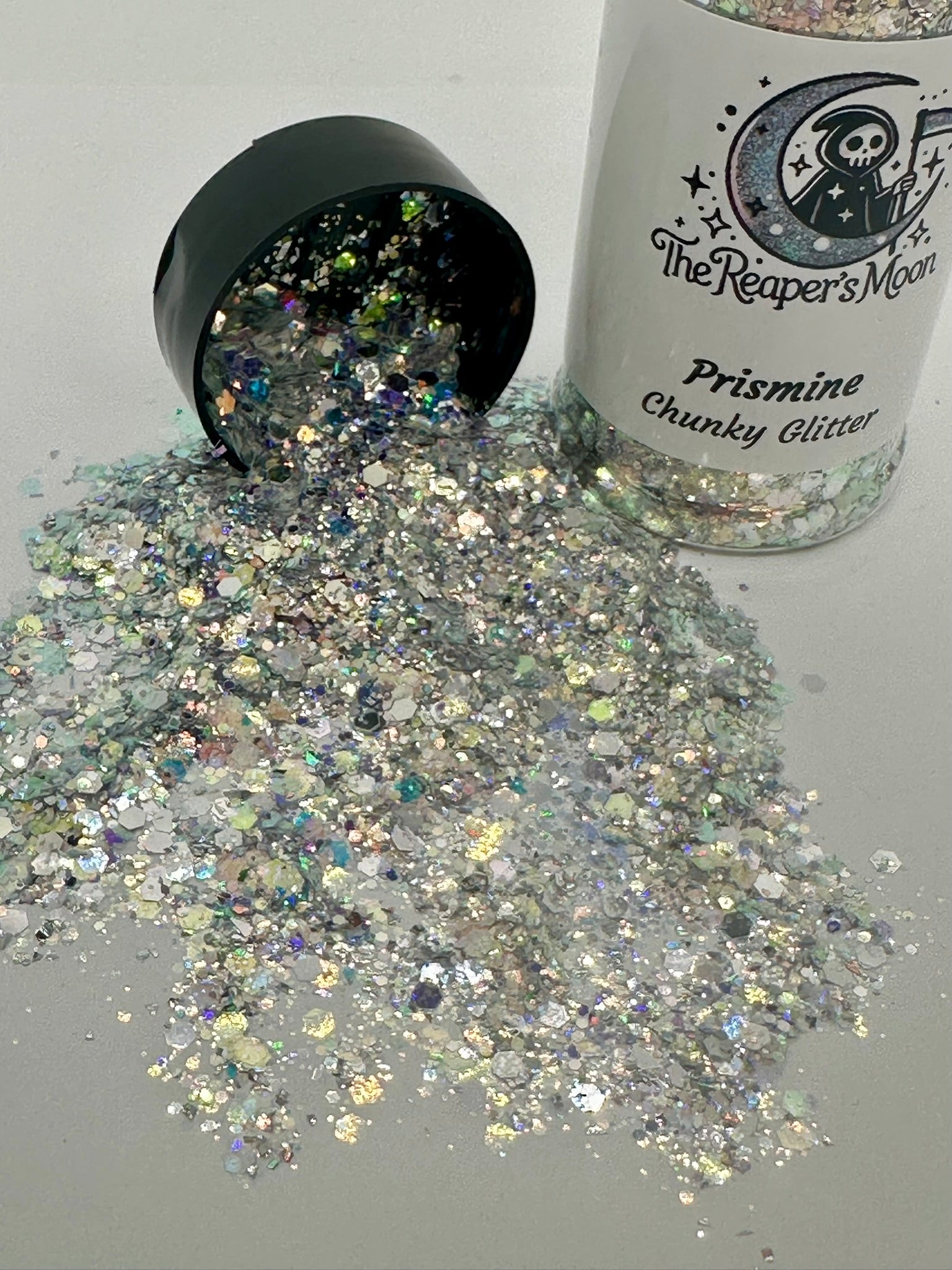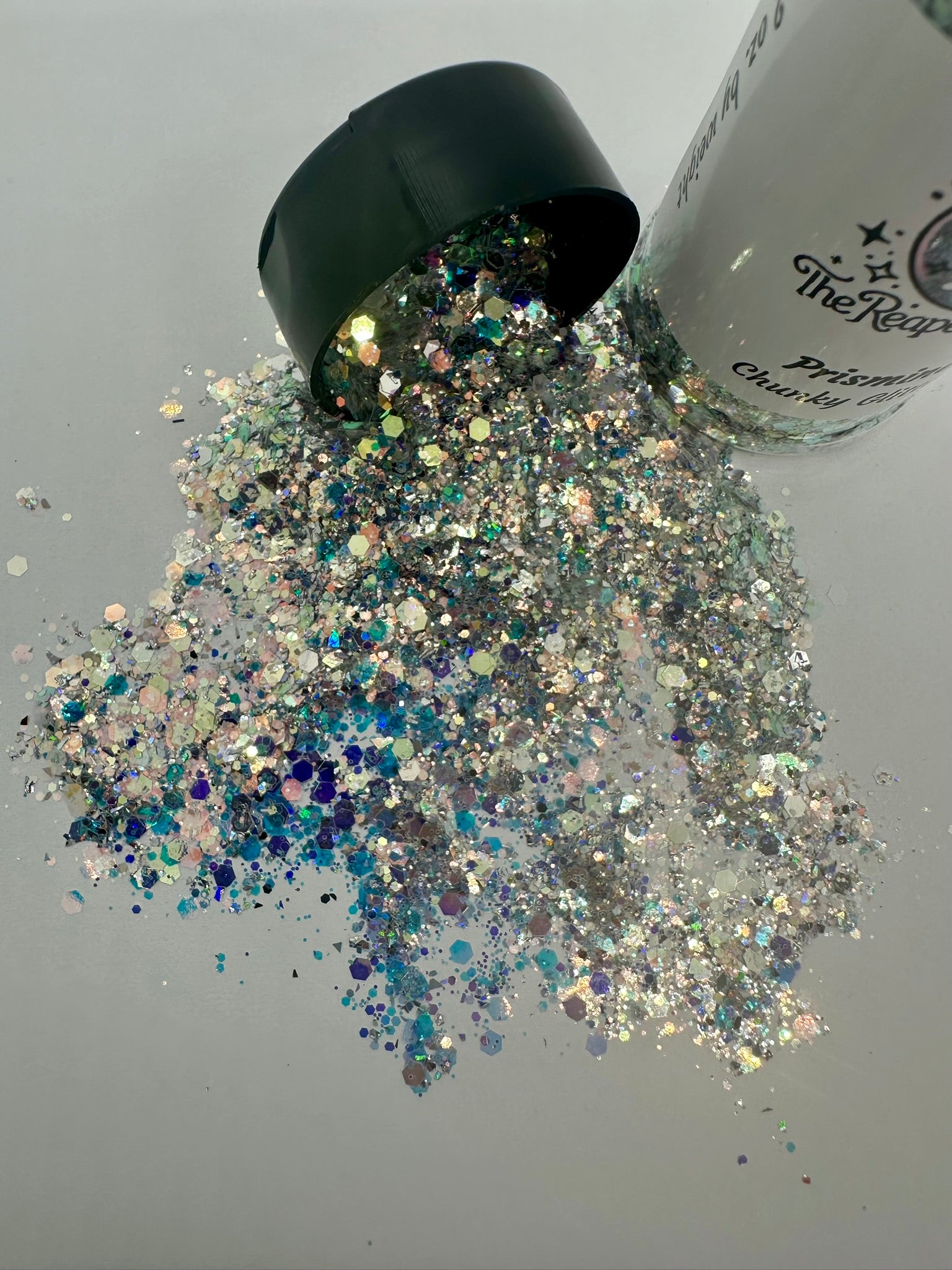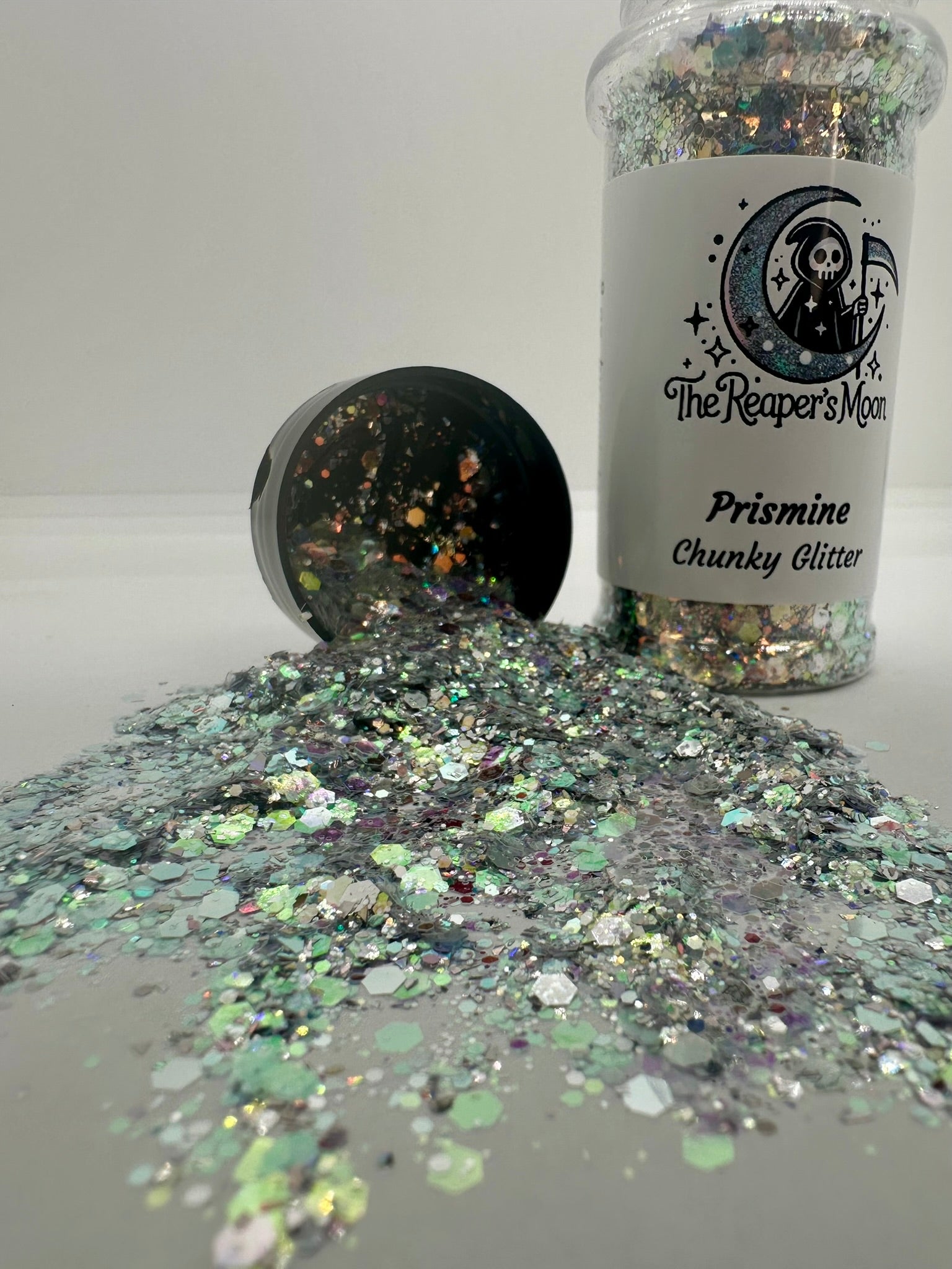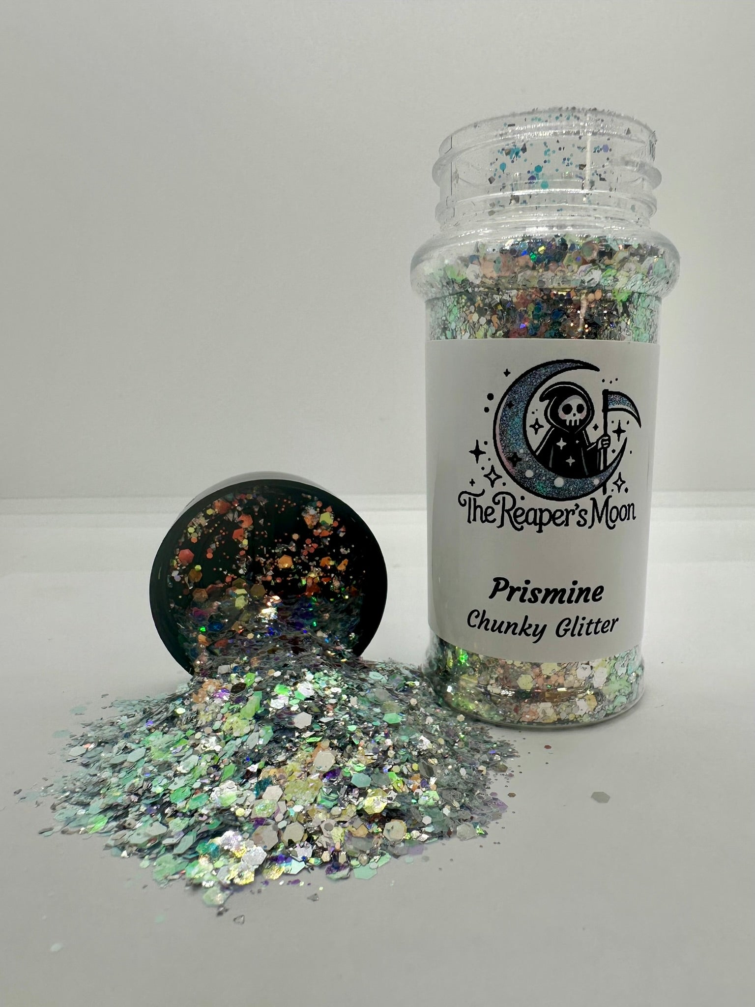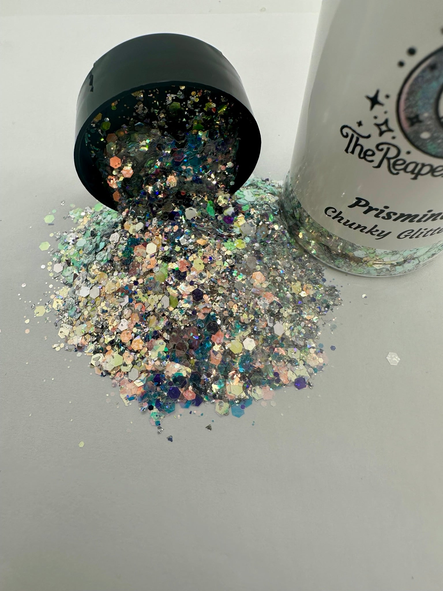 Unleash dazzling sparkle with our "Prismine" chunky glitter! A vibrant mix of iridescent and holographic flakes perfect for all your creative projects.
