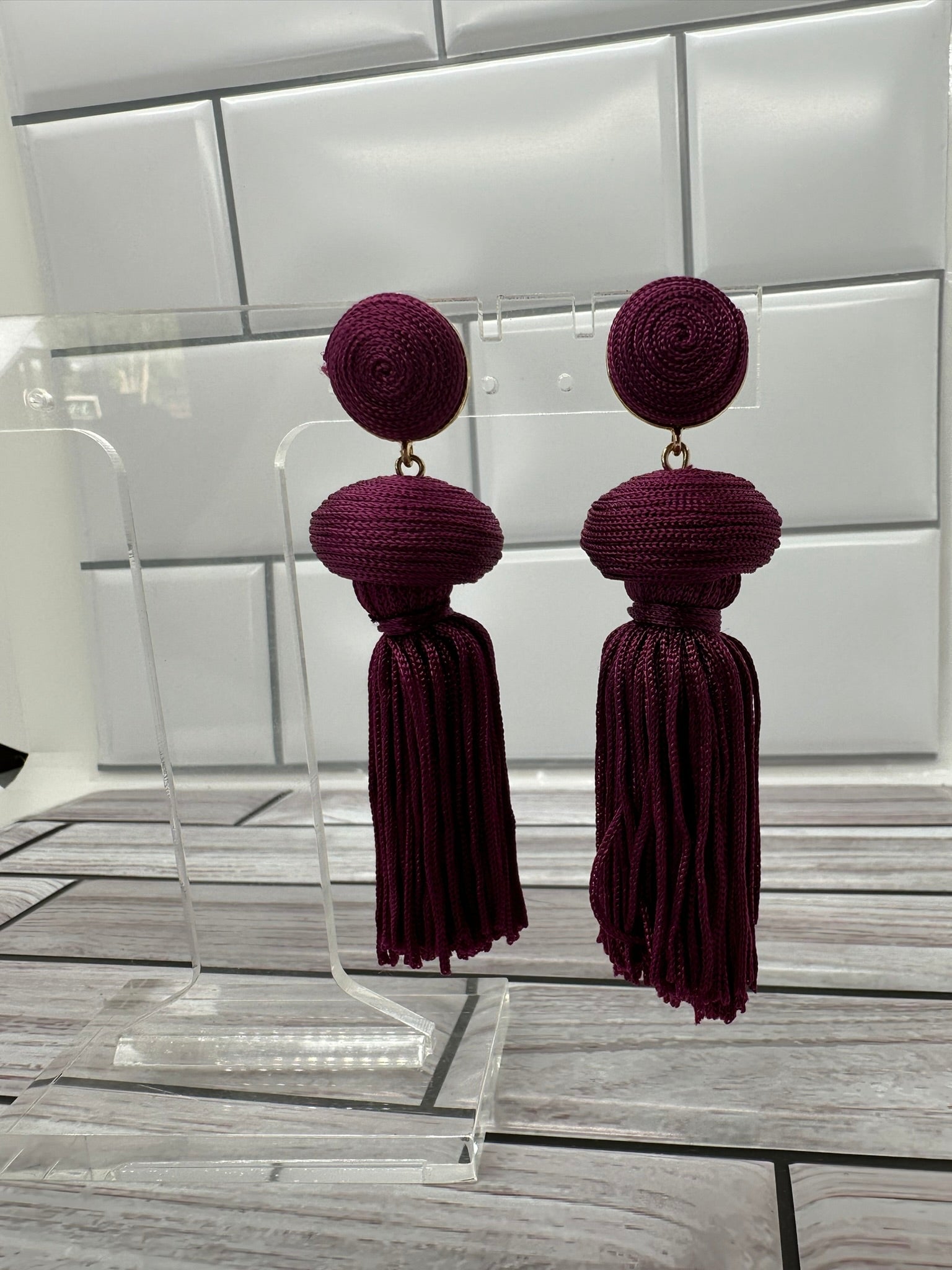 Elevate your style with these stunning Purple Sphere Tassel Earrings. The sleek purple tassels add a touch of sophistication to any outfit, while the unique design is sure to turn heads. Perfect for a night out or to add a chic flair to your everyday look, these earrings are a must-have accessory. Made to stand out, these earrings are a versatile addition to your jewelry collection.