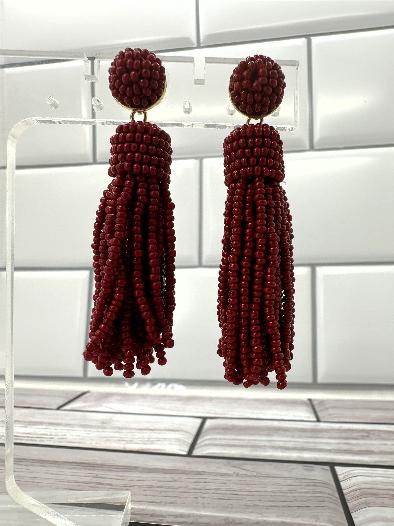 These stylish Red Bead Tassel Earrings are the perfect accessory to add a pop of color to any outfit. Made from vibrant red beaded tassels, these earrings are lightweight and comfortable to wear all day long. Whether you're dressing up for a special occasion or just adding a fun touch to your everyday look, these tassel earrings are sure to make a statement.