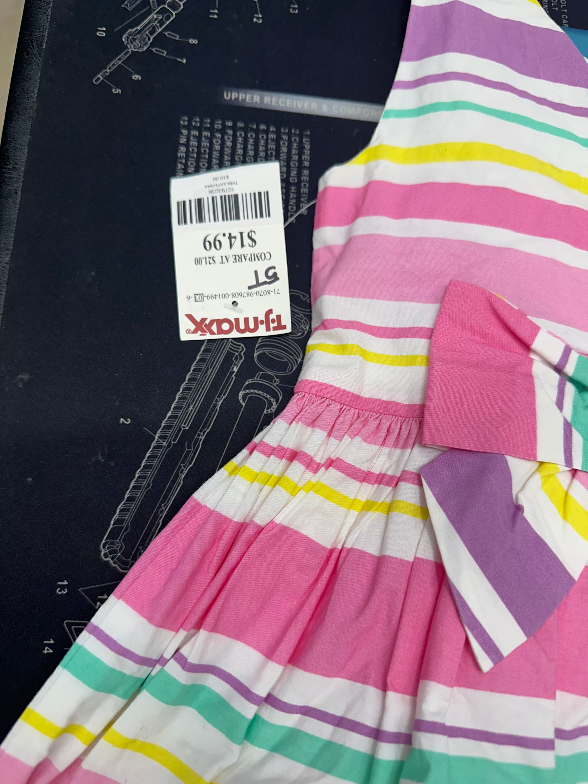 Savannah Pink Multi Colored Stripped Dress w/Bunny Bag 5T NWT
