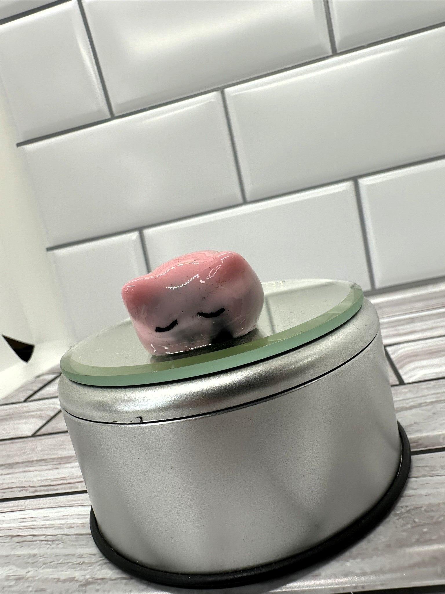 This adorable pink sleeping cat is the perfect addition to any office or room, adding a touch of cuteness to your space. The Sleeping Pink with Black Marble Cat not only a functional pen rest, but also a charming decorative piece that will bring a smile to your face every time you see it.