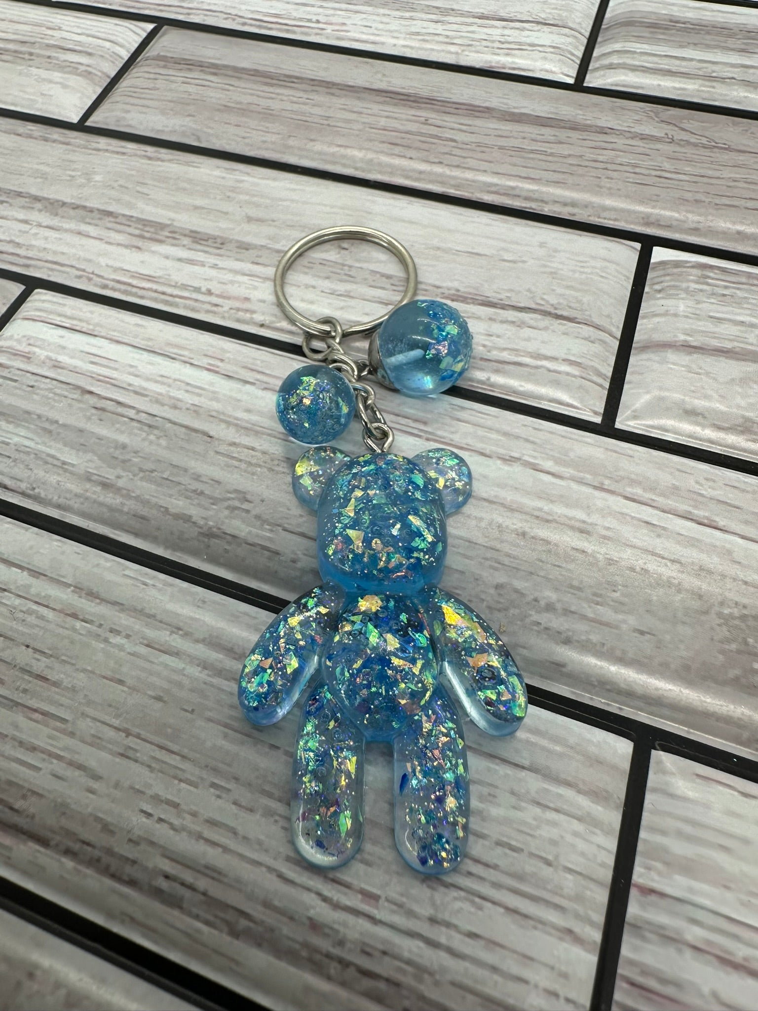 This adorable handmade resin bear keychain is the perfect accessory for adding some sparkle to your day! Featuring a beautiful translucent blue color with iridescent glitter and two matching beads, this keychain is sure to catch the light and turn heads. Made with high-quality resin, this durable and charming keychain is a great way to add a touch of personality to your keys, bag, or backpack.