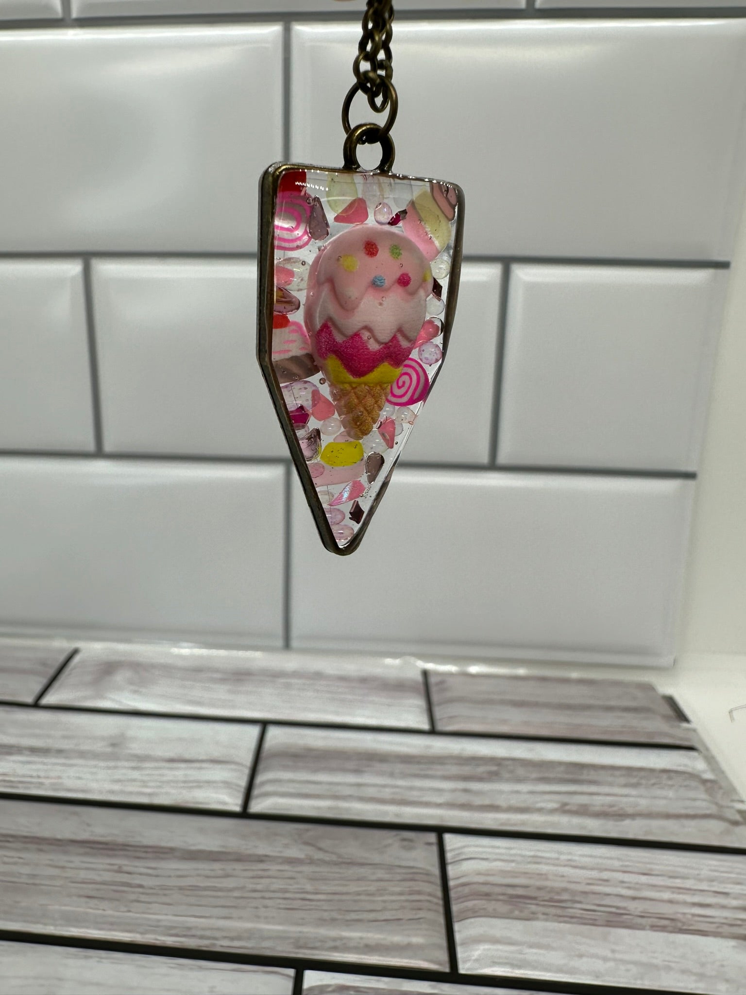 Indulge your sweet tooth with the Whimsical Pink Ice Cream Cone Resin Necklace.