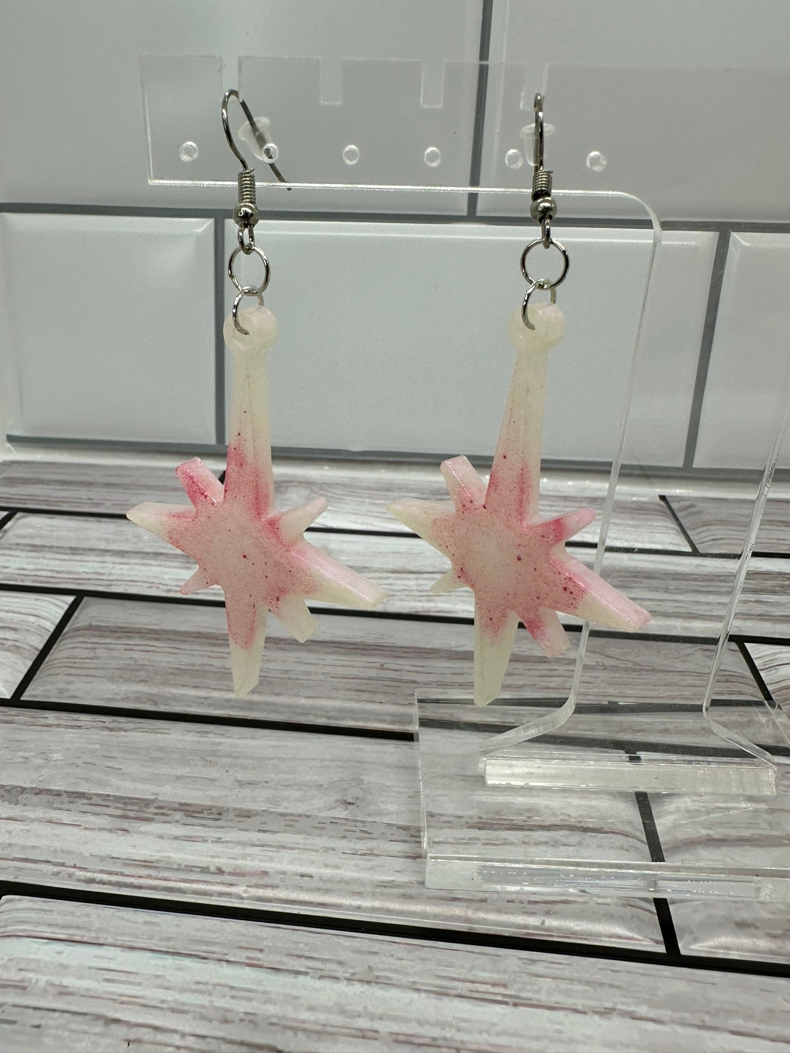 White and Pink Shimmer Star Burst Earrings