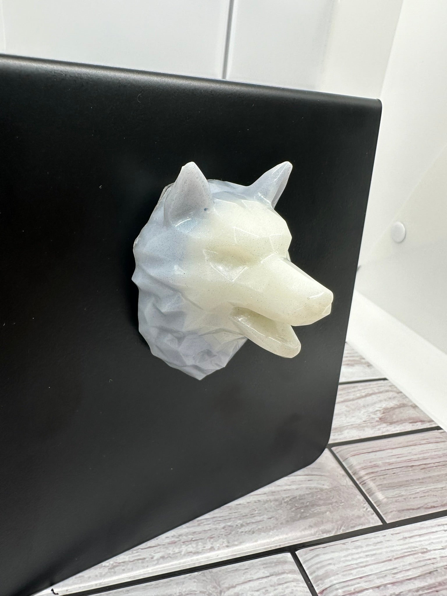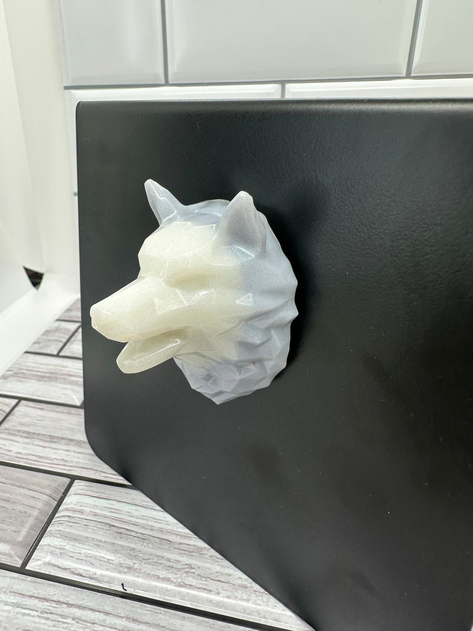 This unique White & Blue Wolf Head Fridge Magnet is the perfect addition to any refrigerator or magnetic surface. Made of high-quality materials, this magnet features a striking design of a white and blue wolf head, adding a touch of wildlife and elegance to your kitchen decor. The strong magnet ensures it will securely hold up papers, photos, and more while adding a stylish touch to your space. Ideal for wolf lovers or anyone looking to add a touch of nature to their home.